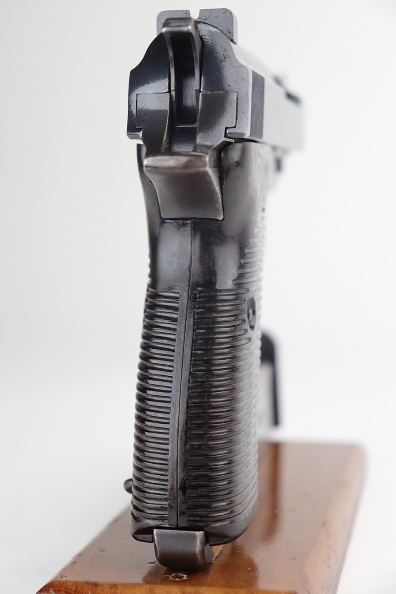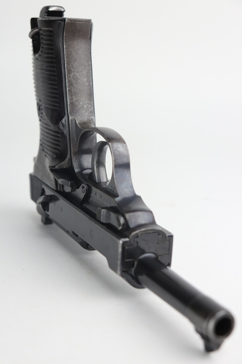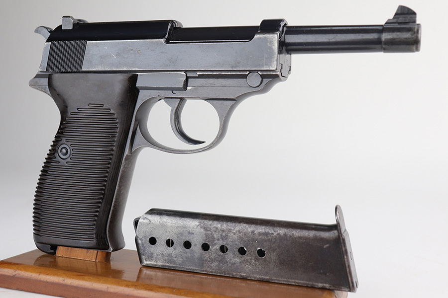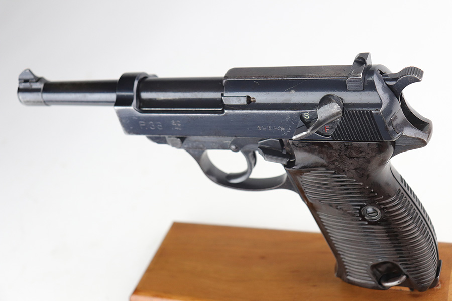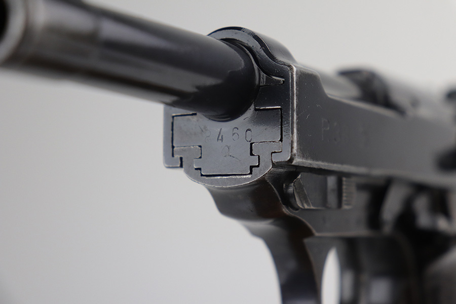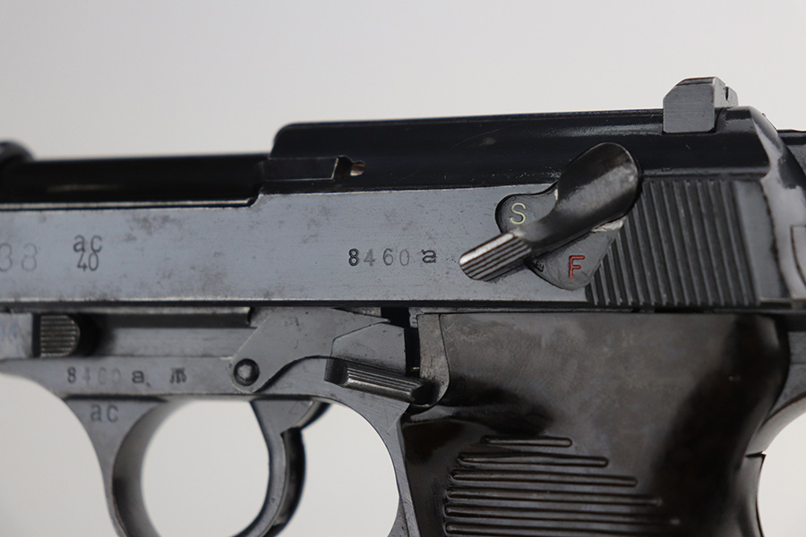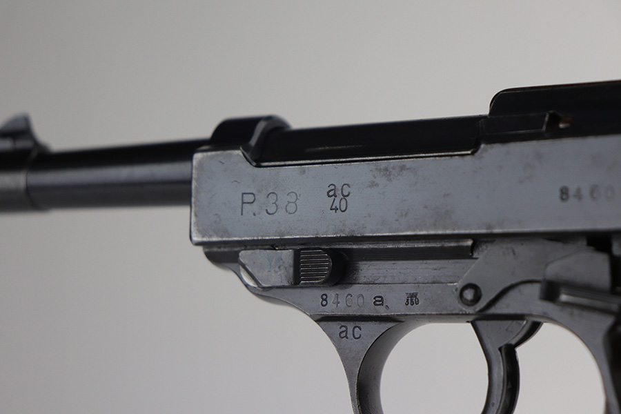11/29/21 – This is a rare Nazi Walther P.38 from 1940, one of only 20,000 produced. All matching numbers throughout, including the grips. The pistol has a nice profile with some high edge wear and minor oxidation, but most of the wear and discoloration is on the front strap. Magazine is WW2 original but a later example. Small parts all correctly have E/359 proofs. Good mechanics, including de-cocker. Bore shows some use but generally clean with strong rifling.