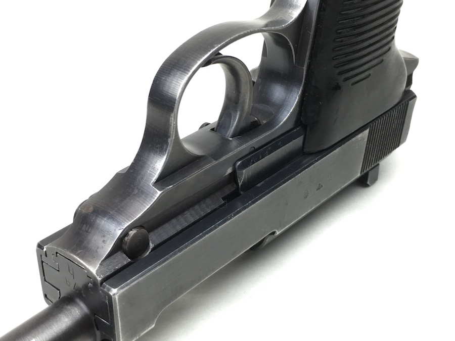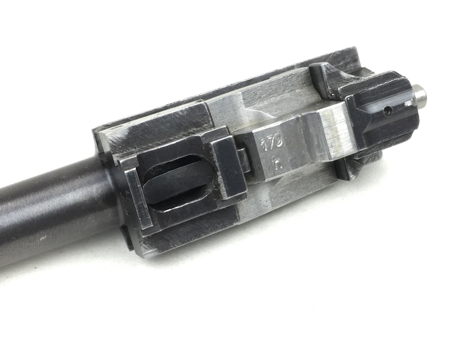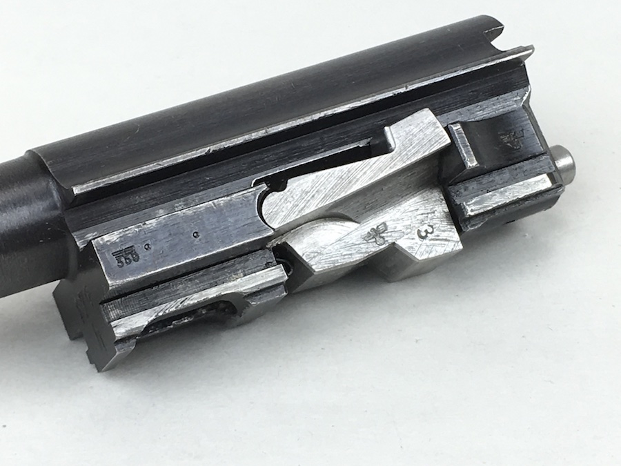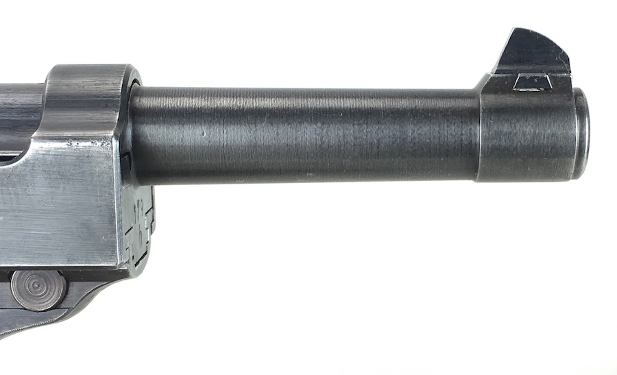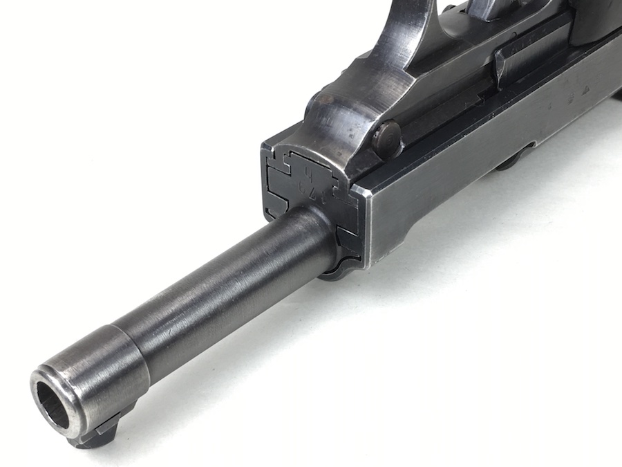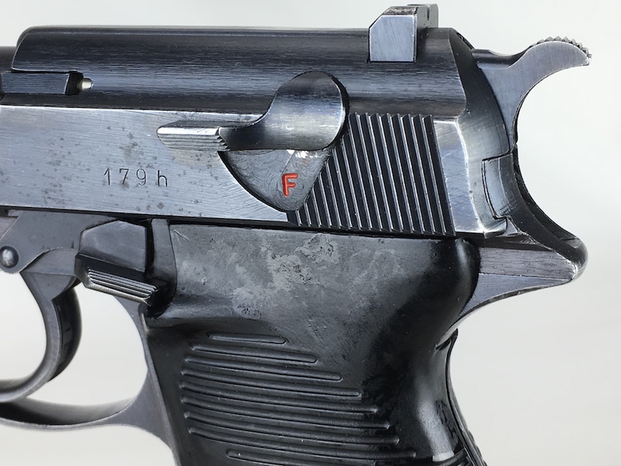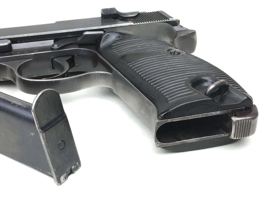 8/26/19 – This is a nice Walther P.38, produced in 1942. This all matching gun has about 90-93% of its original, dull military finish. The wear is generally high edge wear, found on either side of the muzzle and front edge of the slide. Also some minor speckling found on the slide as shown in photos. Front strap has a few spots of discoloration as well. Magazine is E/359 proofed on the spine. Very nice deep brown, nearly black grips with no cracks or scratches. Bore is shiny with good rifling with minor areas of pitting, resulting in a 7.5/10 overall rating. Mechanically sound with smooth action.