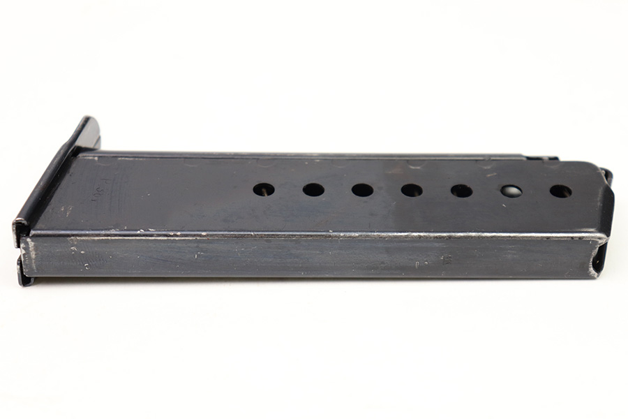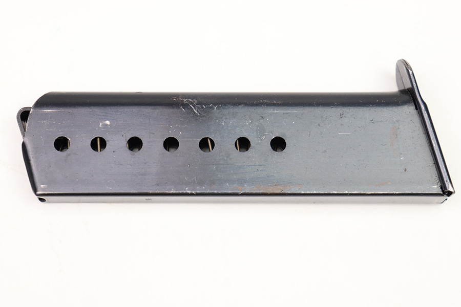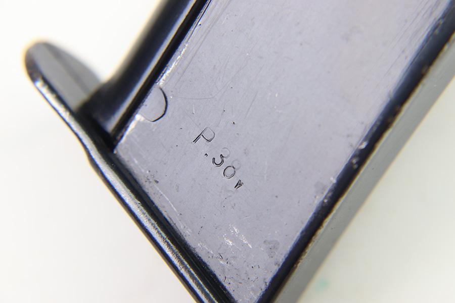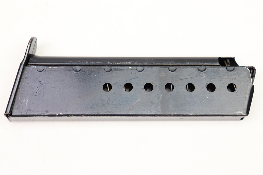 10/19/22 – This is an original Walther P.38 magazine from WW2. Wartime production with P.38v stamped on the left side of the tube, and proof stamped on the spine with a waffen eagle 359. No other markings or stamps. Strong spring and excellent bluing throughout with only some mild finish loss as shown.