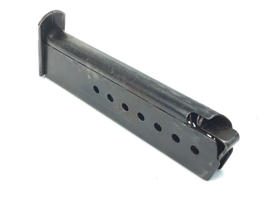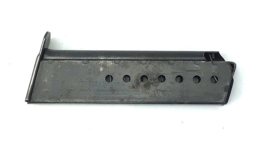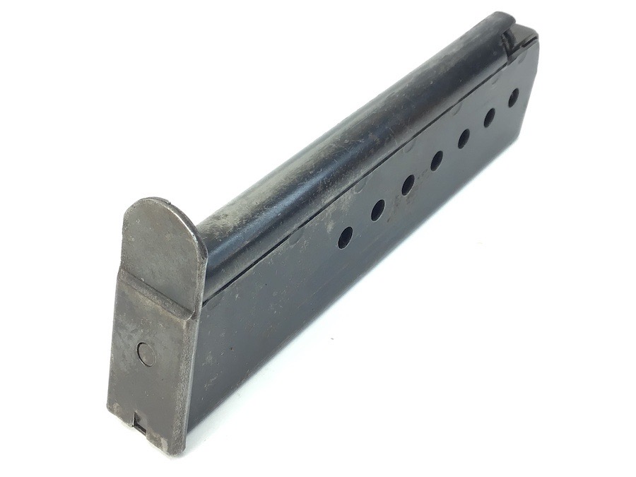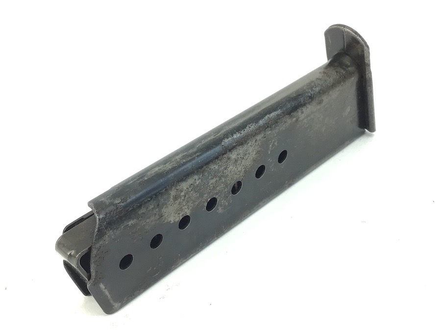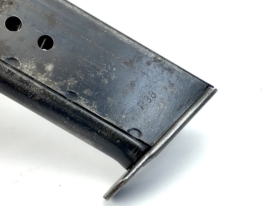 3/3/23 – Original and good condition. Walther P.38 Magazine for AC 42-44. Bluing wear and minor corrosion on the surface with some discoloration. Strong, smooth spring that’s fully functional. P.38 is stamped on the left side of the housing and a single Walther acceptance stamp E/359 is stamped high on the spine. Great shooter grade magazine.