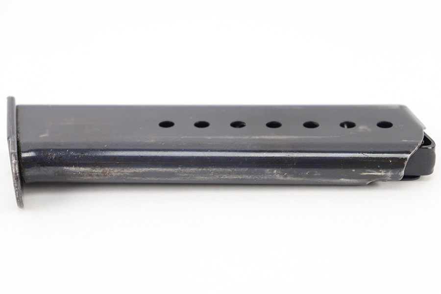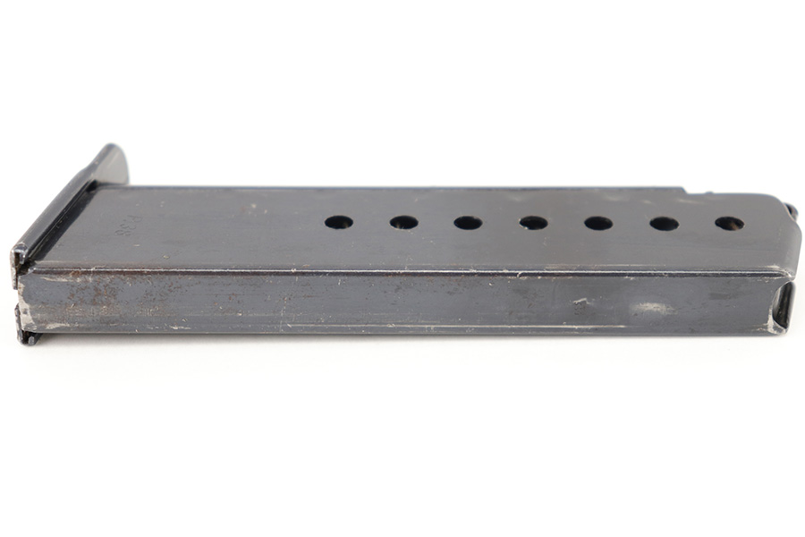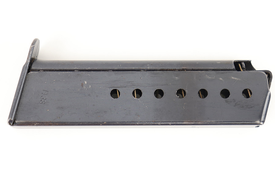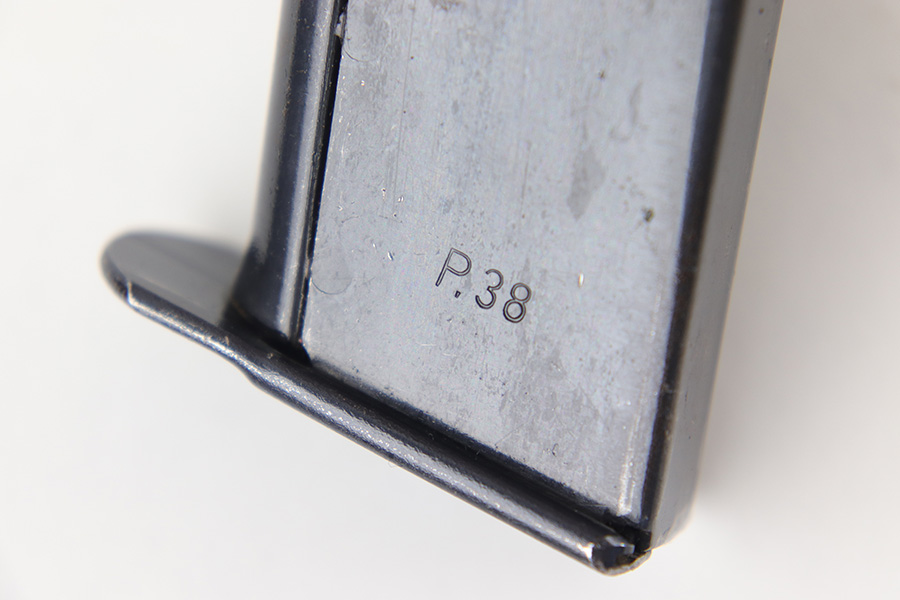 5/29/23 – This is an original Walther P.38 magazine from WW2. The magazine is in great overall condition with some mild finish loss and surface patina, but most of the original finish intact. The spring is strong and fully functional. Stamped “P.38” on the left side, and eagle/359 stamped on the spine. Great wartime variation example.