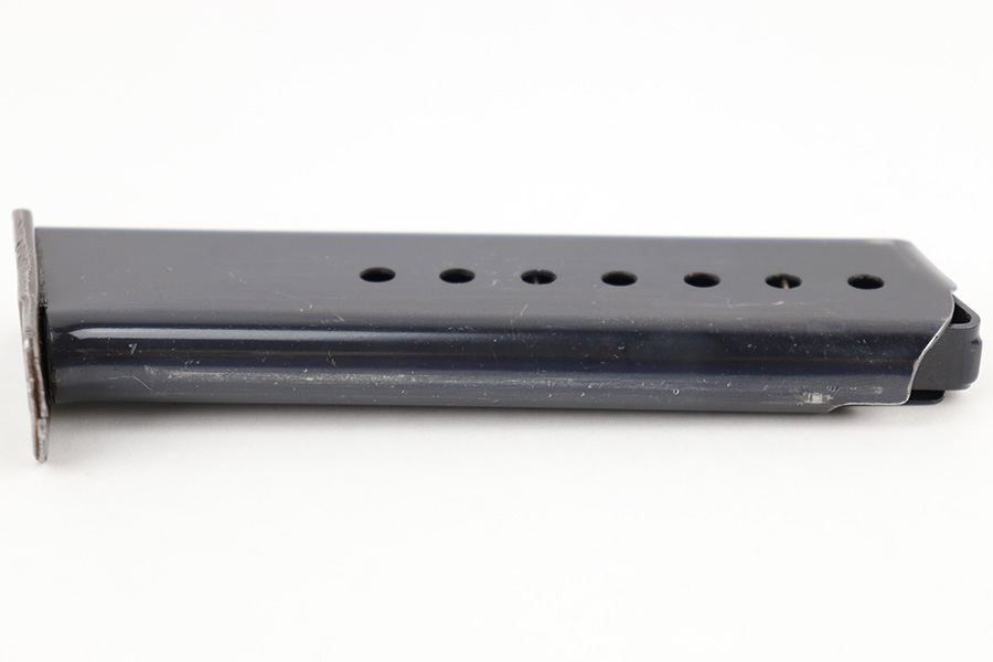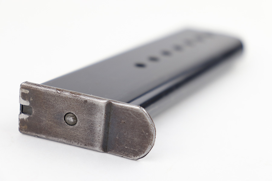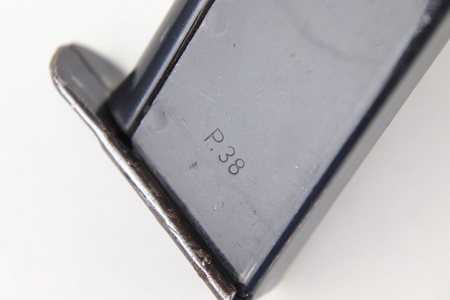 6/13/23 – This is an original WW2 production Walther P.38 magazine. The magazine is in great overall condition with a majority of the wear being found on the base plate. The tube has excellent bluing throughout and is waffen eagle 359 military proof stamped on the spine, and P.38 stamped on the left side, as shown. Strong, functional spring.