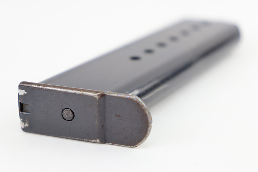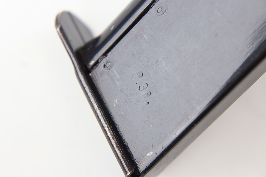 8/24/23 – This is an original Walther P.38 magazine from WW2. The magazine is wartime production, stamped P.38v on the left side, and eagle/359 military proof stamped. Excellent overall condition with minimal finish loss. Functional spring.