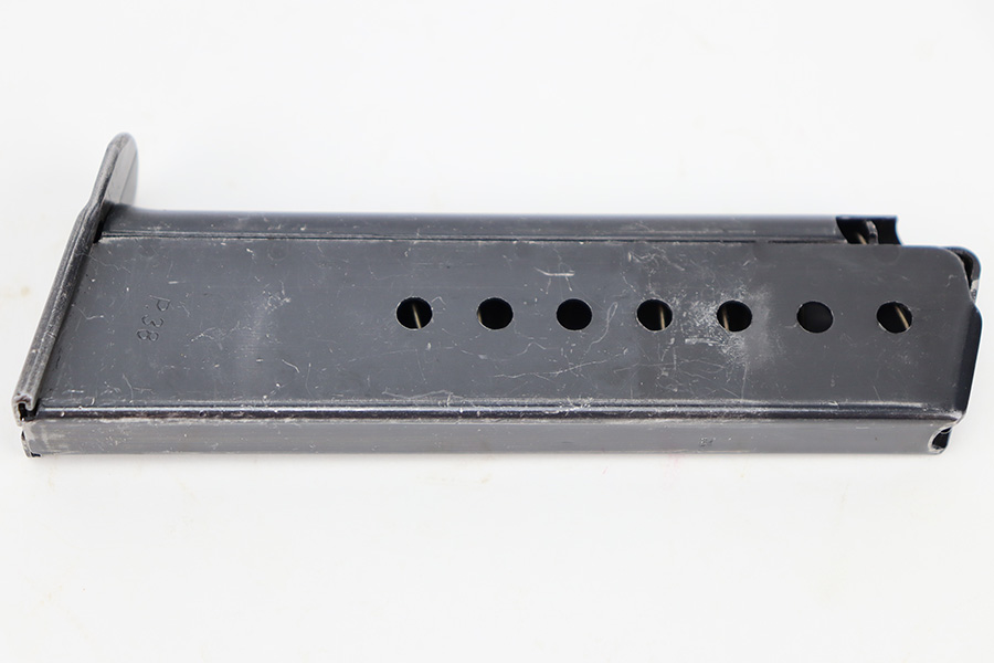 12/11/23 – This is an original WW2 Walther P.38 magazine. The magazine is in great condition with most of the original finish intact. Light surface wear throughout. Stamped on the left side “P.38” with an eagle/359 military proof on the spine. Strong, functional spring.