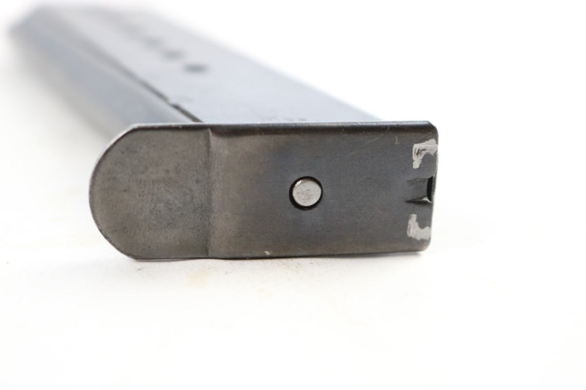 6/1/18 – This is an original WW2 production Walther P.38 magazine in excellent condition. The only “flaw” is the eagle/359 proof stamp on the spine is very light. The faint stamp can still be seen in the right lighting though. The spring is strong and finish on the magazine is excellent. There’s light wear (discoloration) in a few spots on the tube and base, but overall excellent.