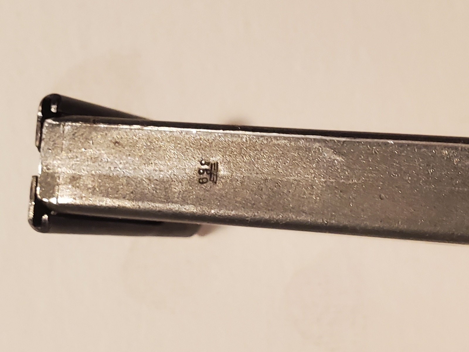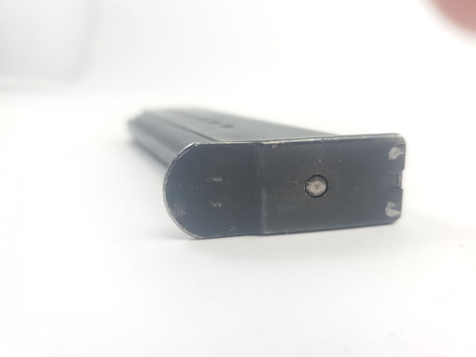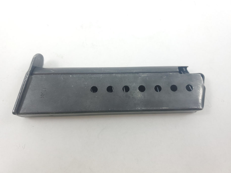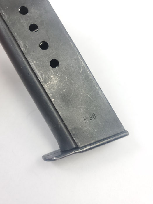 3/27/20 – This is an original, early variation Walther P.38 magazine. The magazine is excellent with minimal wear, and has early features like a “P.38” without the “v” and two eagle/359 military proof stamps on the spine. All original and fully functional.