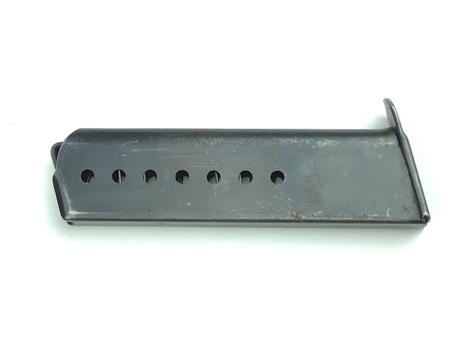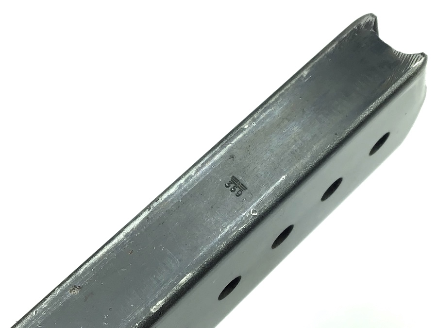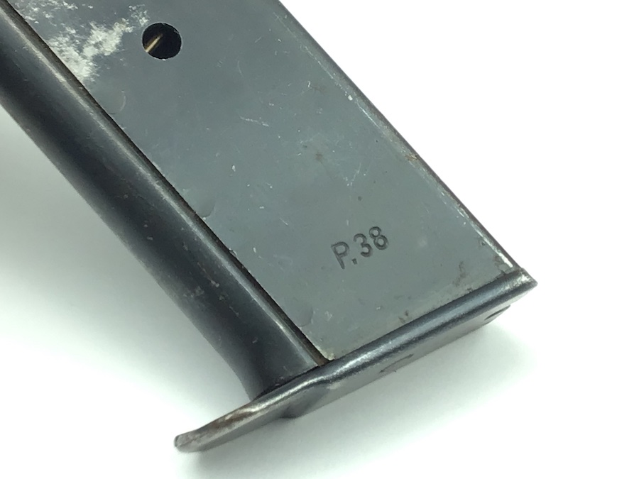 11/25/20 – This is an original WW2 variation P.38 magazine. The left side of the frame is stamped “P.38”. The spine is stamped with and eagle 359 proof near the top. There are no other markings. The spring is excellent and fully functional. The original blued finish has minimal wear with no pitting or corrosion.