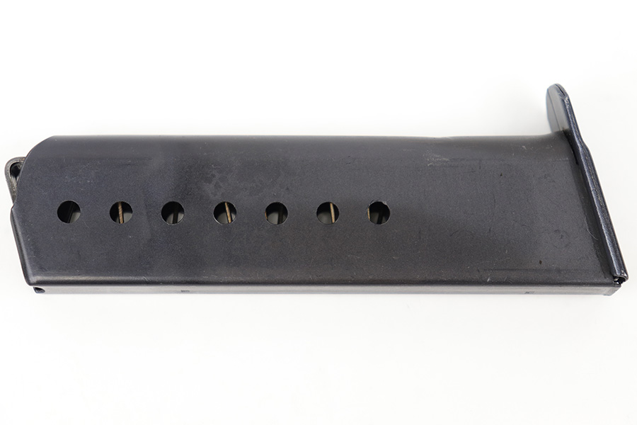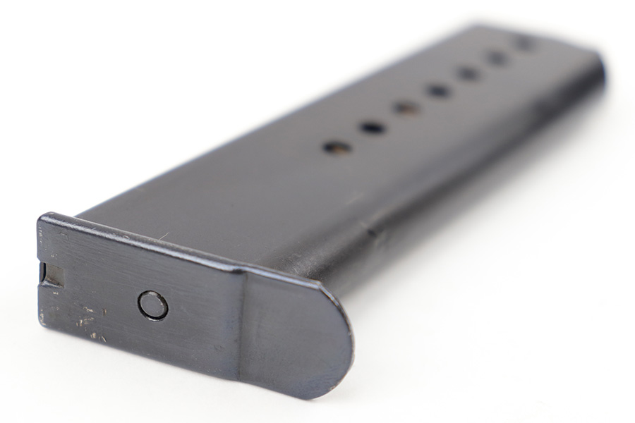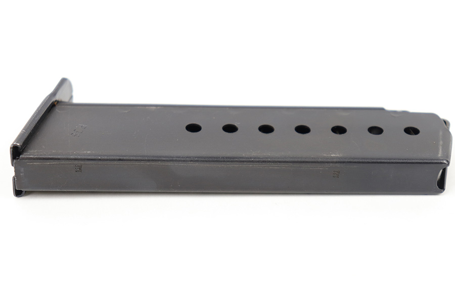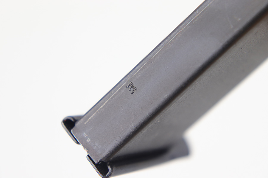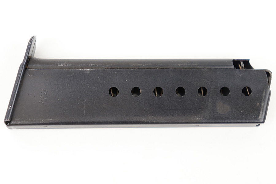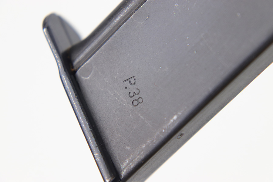 4/4/23 – This is an original, early variation Walther P.38 magazine. The magazine is stamped on the spine with two crisp eagle 359 military proof stamps. The left side of the tube is P.38 stamped. Excellent condition with some mild surface wear. The follower is clean and the spring is strong and fully functional. Unfortunately, the base plate appears to be a post-war replacement. Price reduced accordingly. Excellent condition overall.
