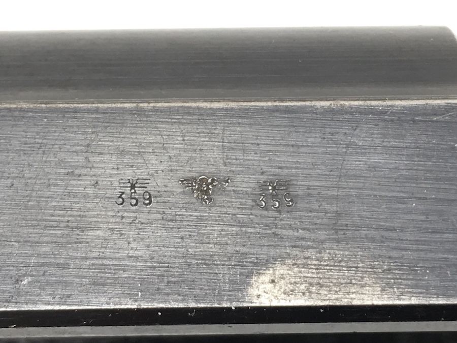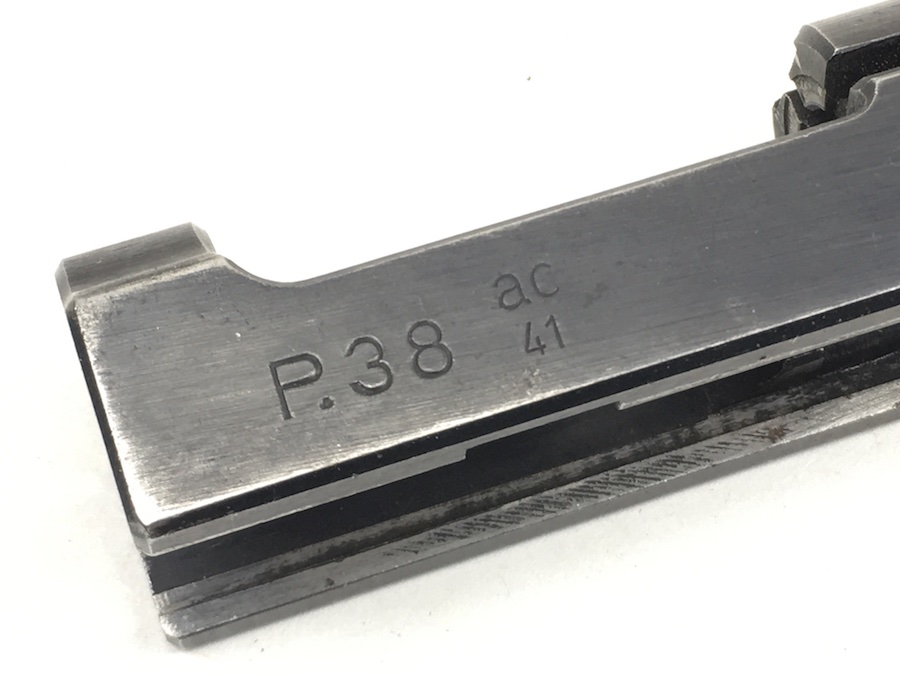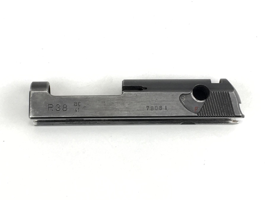 6/19/19 – Original and great condition AC 41 slide for the P.38 9mm pistol. Original bluing rated at 90% with some high edge wear.
