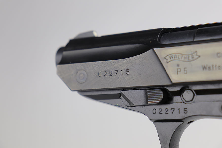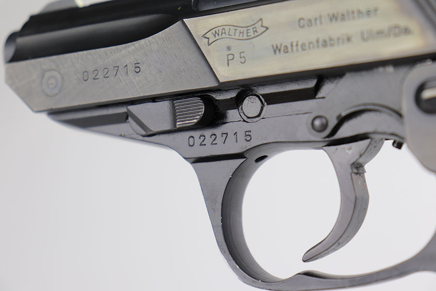 11/18/20 – This is a near-mint Walther P5 that was made in 1981. All matching and original. Tiny area of wear on left side of slide, and right side of frame. Excellent grips with only minor handling wear. Minty bore. IB date code on frame indicates 1981. Small import mark on bottom of frame.