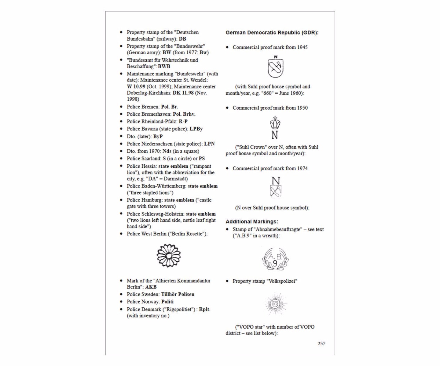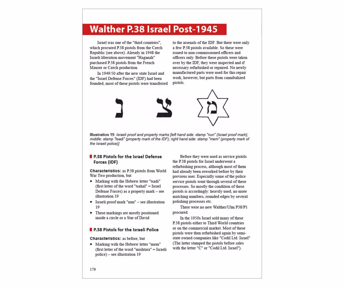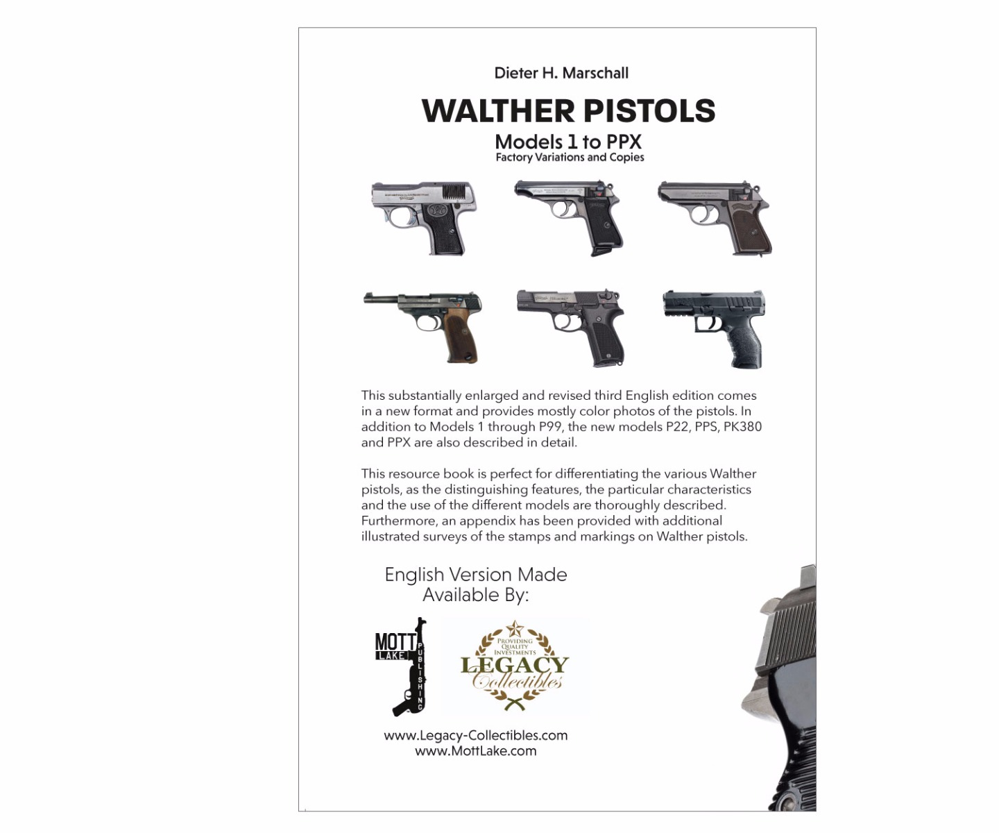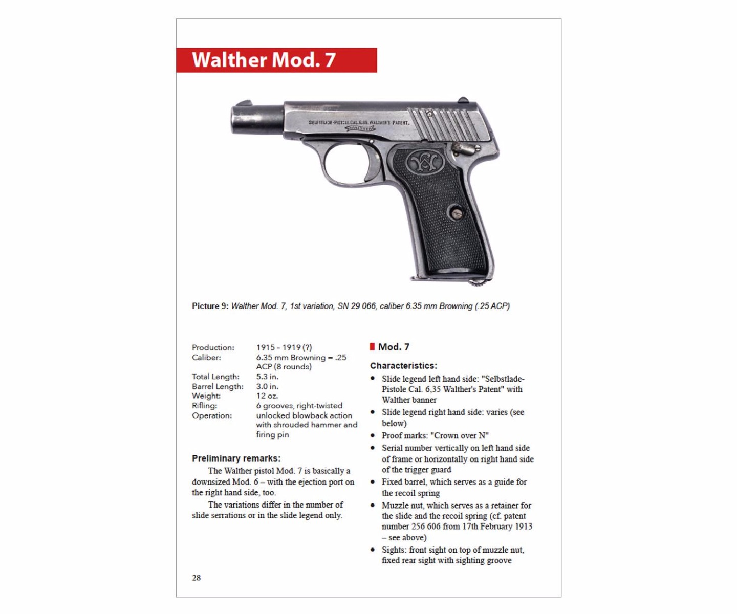 This resource book is perfect for differentiating the various Walther pistols, as the distinguishing features, the particular characteristics, and the use of the different models are thoroughly described. Furthermore, an appendix has been provided with additional illustrated surveys of the stamps and markings on Walther pistols.