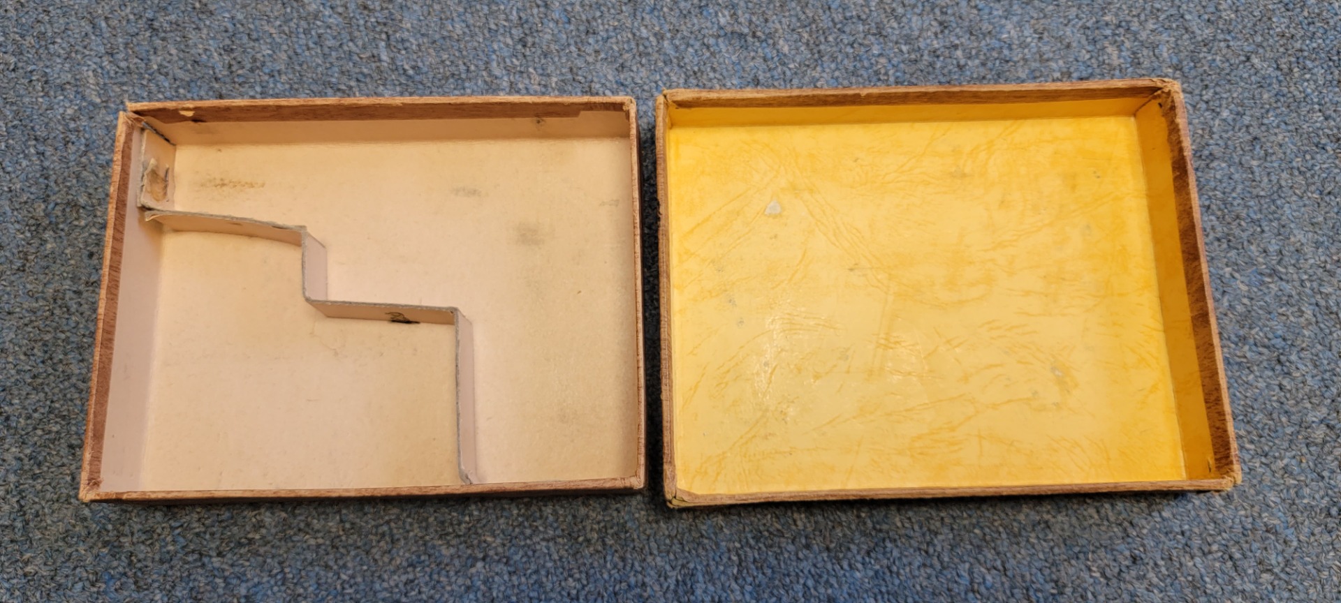 1/3/23 – This is an original PP box manufactured during WW2. The box features a correct green label which shows serial number “168892p”, an intact separator, good yellow upper interior and faded pink lower interior. The box is in great condition overall.