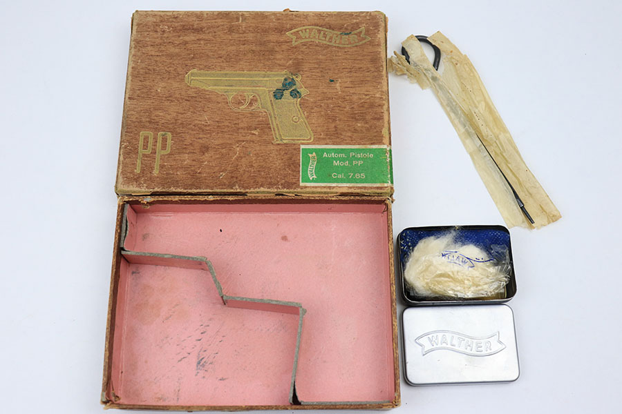 SOLD – Walther PP Box, Cleaning Rod, & Tin