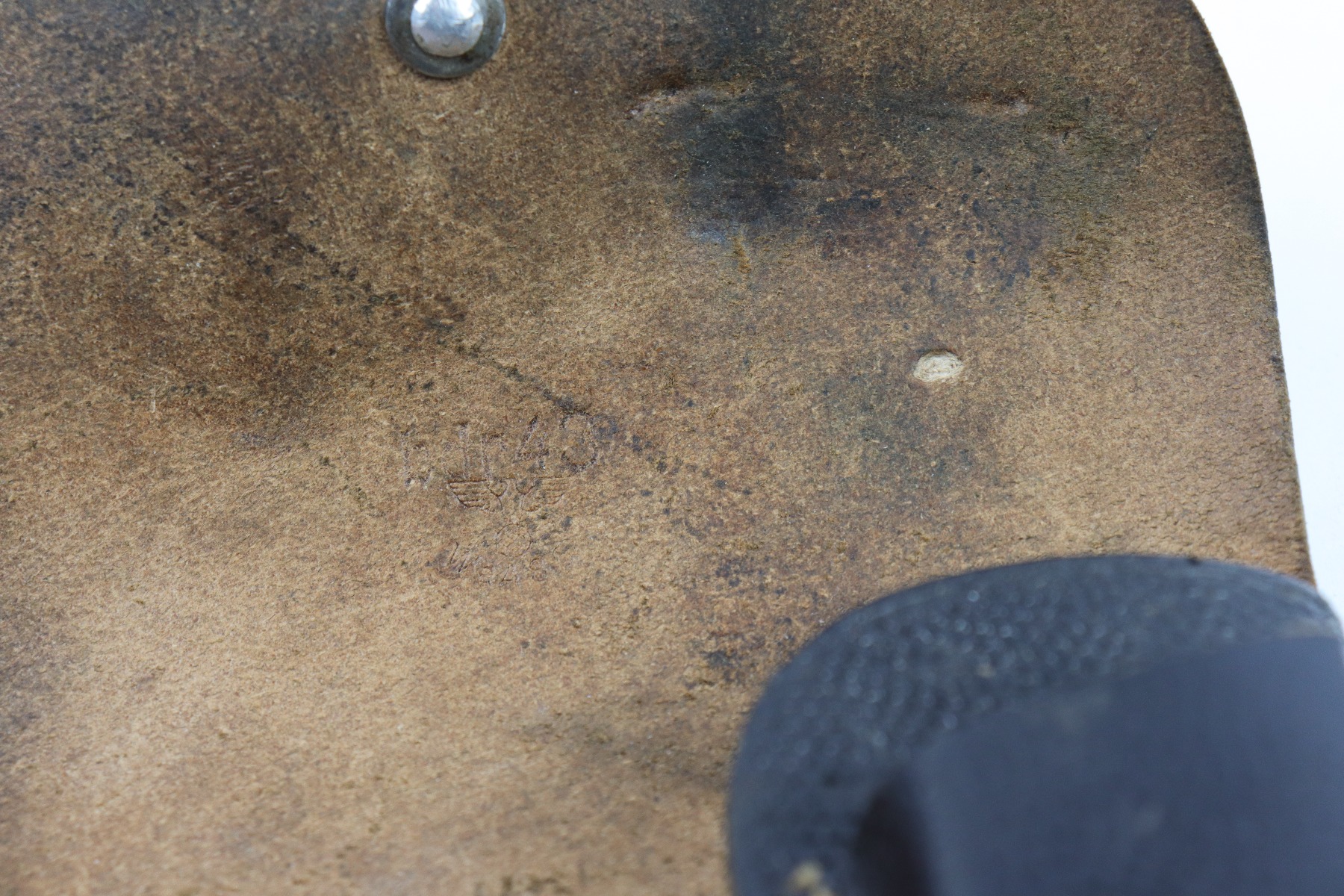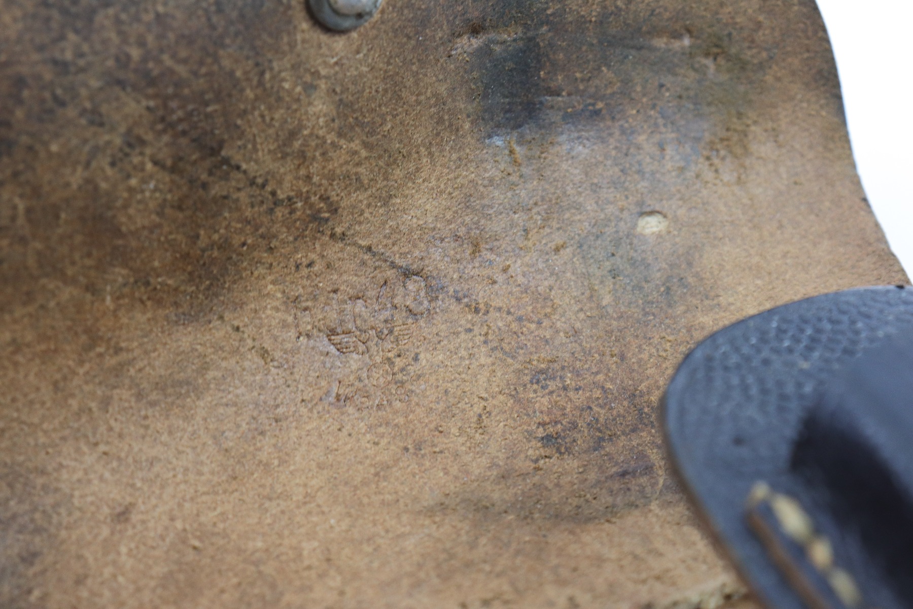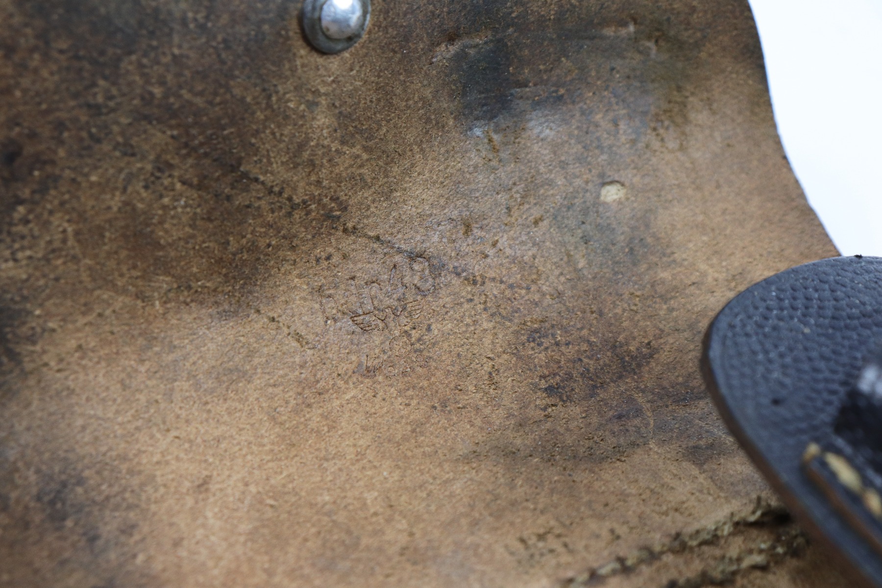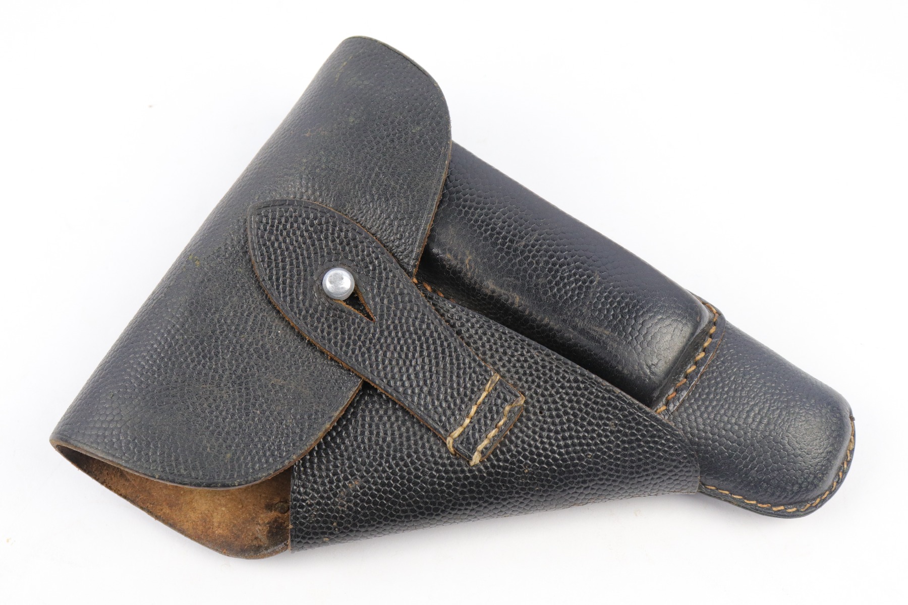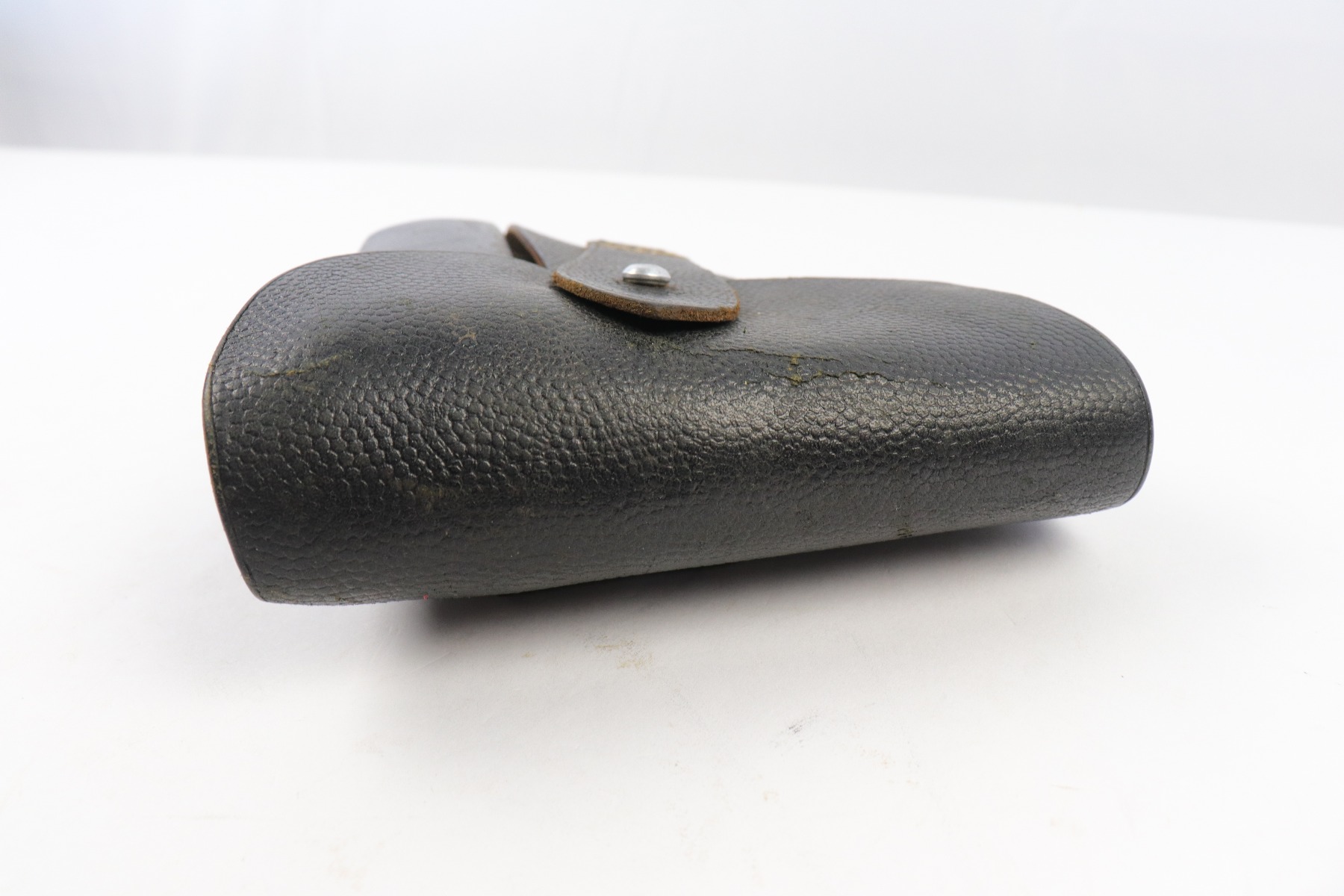 4/5/18 – This is an original pebble grain holster that fits a Mauser HSc, Sauer 38h, CZ-27, or Walther PP. The holster has a “bdr” maker code and 1943 date stamp on the interior along with a waffen eagle proof stamp. The pebble grain leather has some honest wear but no excessive or notable flaws. All original stitching is in tact. The interior leather is fairly clean. Guaranteed original and authentic.