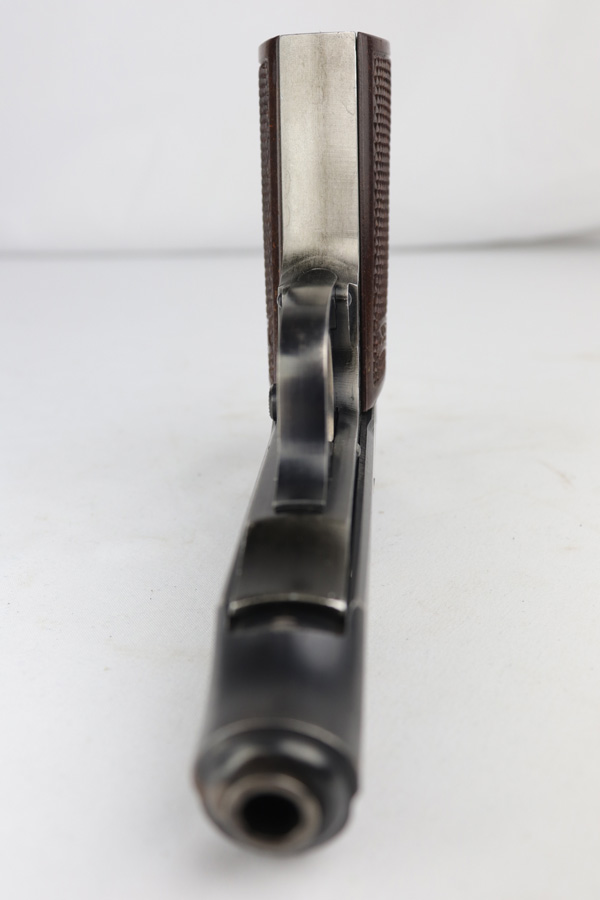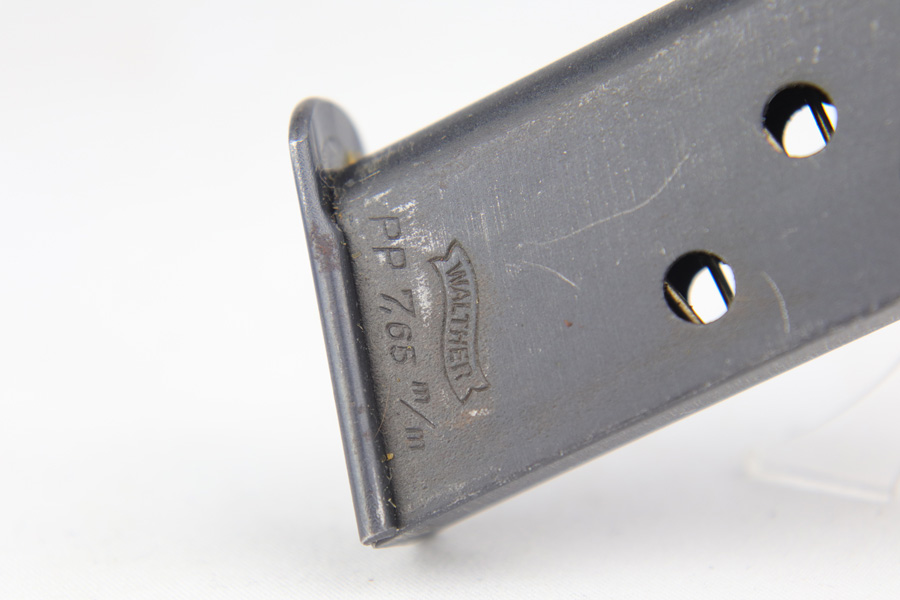 12/19/18 – This is an original Walther PP from the Nazi era. It is a commercially issued pistol with duraluminum frame. The profile is very nice, showing minor thinning and high edge wear, but the straps are missing nearly all the original bluing. All matching numbers. Very nice reddish grips from the late-war era. Excellent bore with strong rifling.