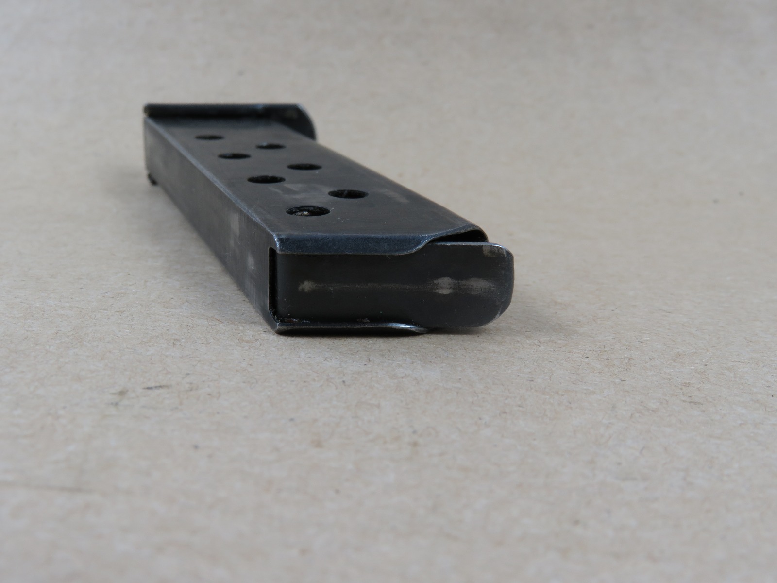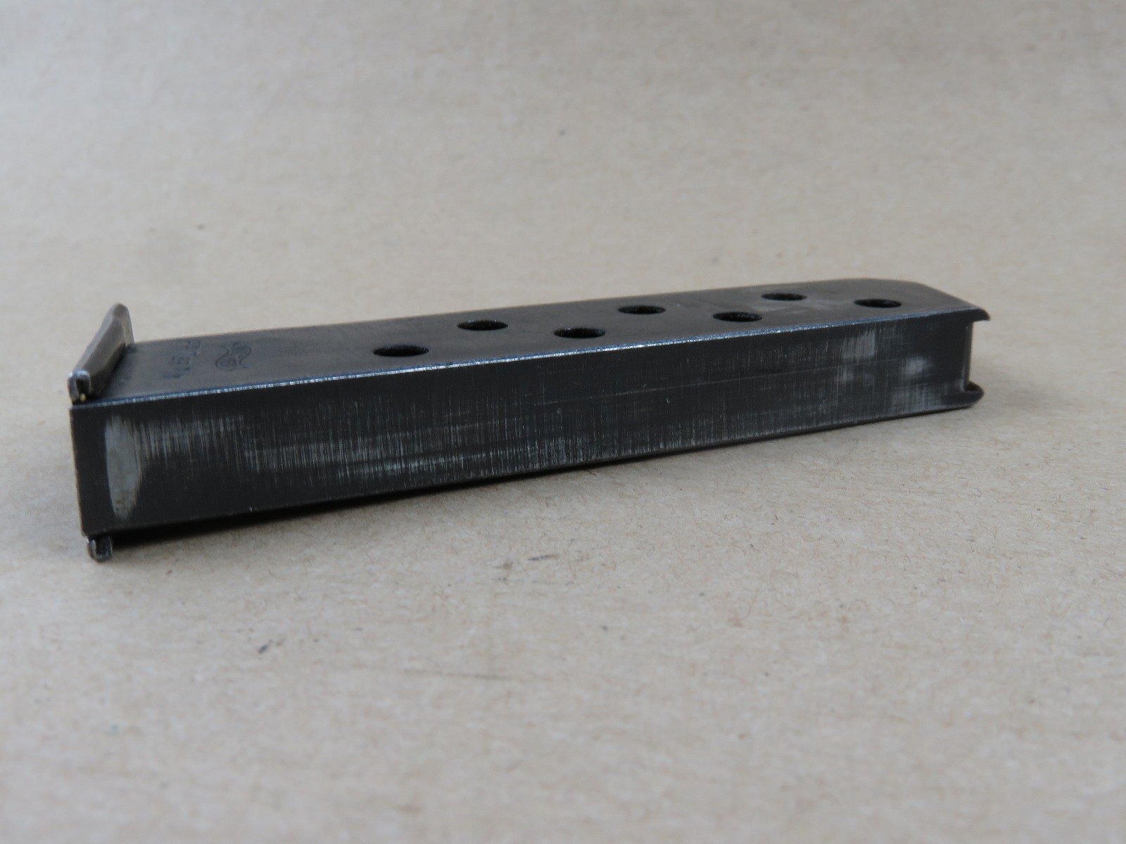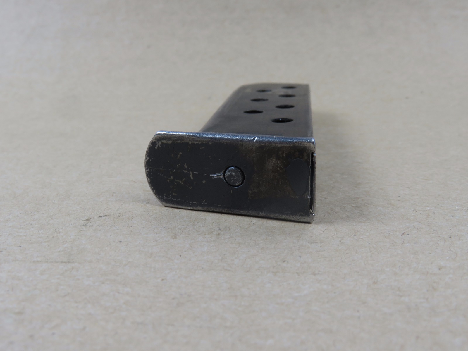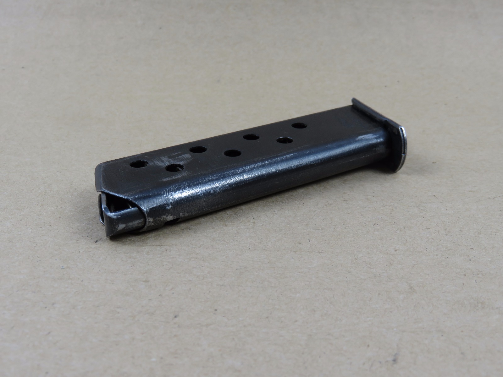 6/14/17 – This is an original WW2 wartime production Walther PP magazine. The magazine has no rust or pitting, but there is some normal use wear and bluing loss. The magazine spring is strong and fully functional. Guaranteed original and authentic from WW2.