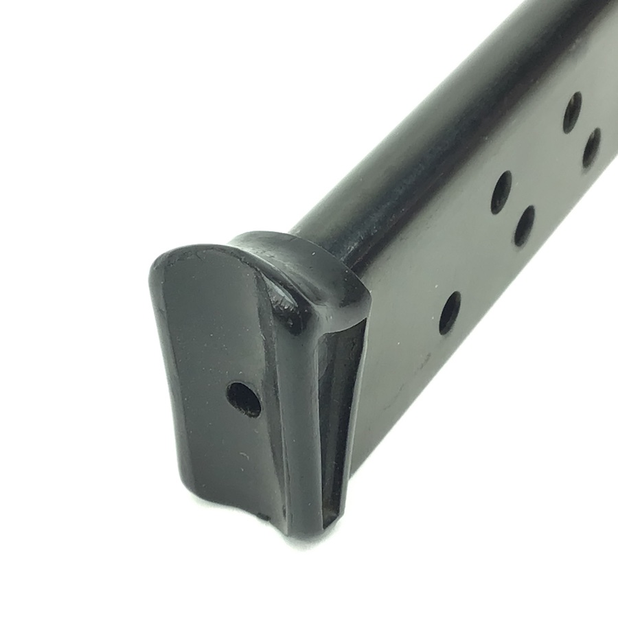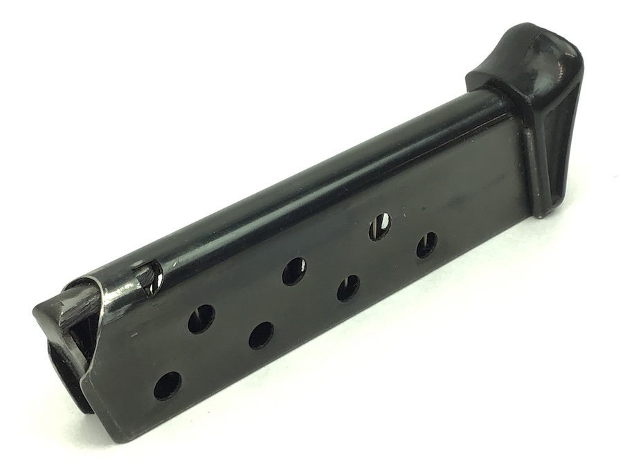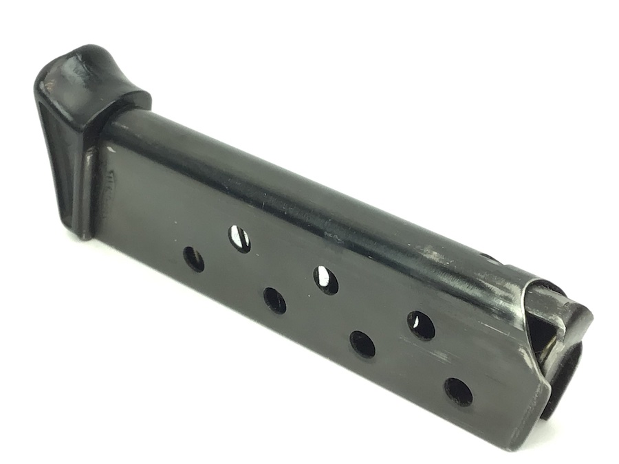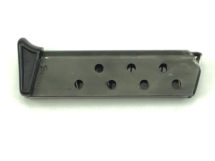 2/10/21 – Original and excellent condition, banner only finger extension Walther PP magazine. High polish bluing that shows only minor wear. Thin lip black finger extension with no cracks or chips. Strong, functional spring.