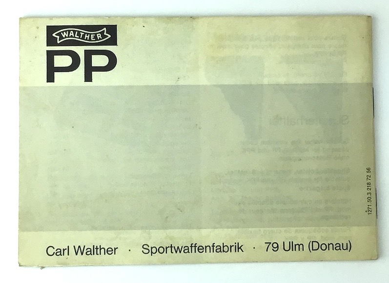 10/26/23 – Original, post war Walther PP owners manual. Original German language publication. All pages intact. Nice addition to your post war Walther PP.