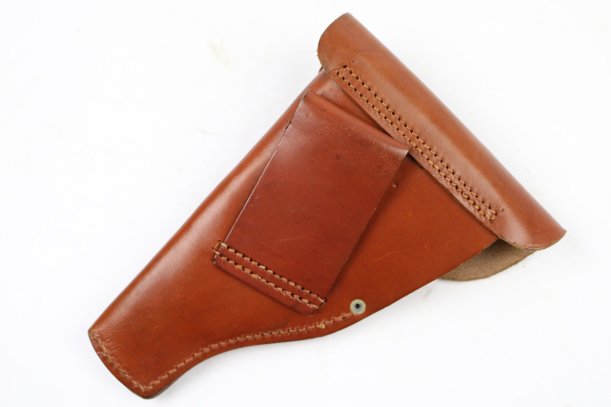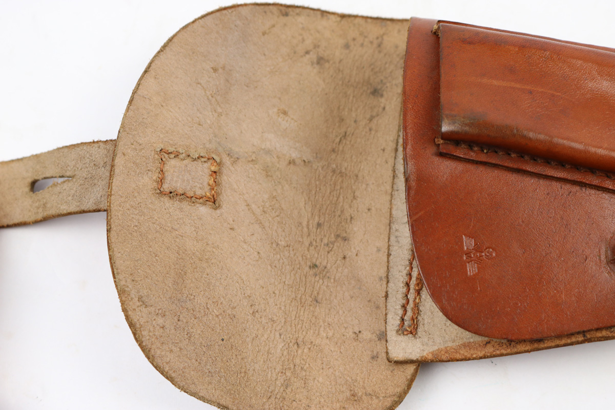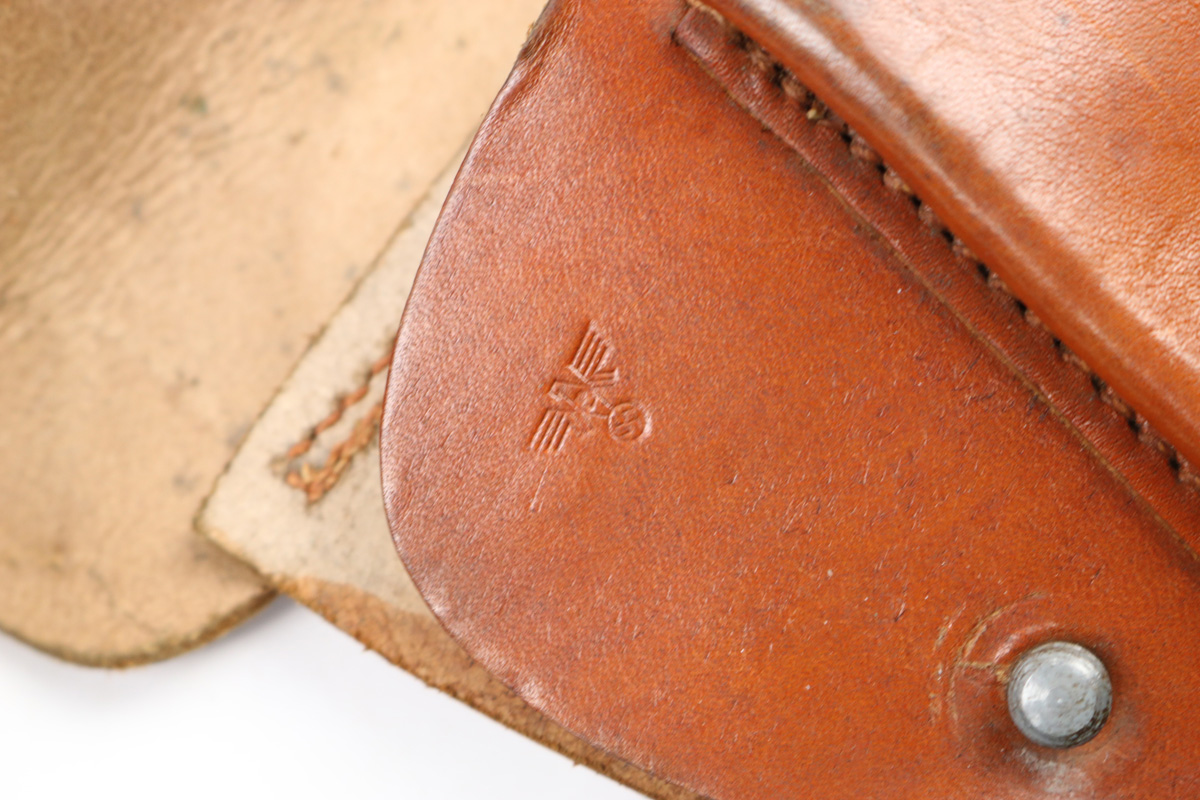 8/14/18 – This is a WW2 Police holster for the Walther PP or similar sized pistol. Minty condition with beautiful leather and stitching. Police eagle stamped under the closure strap. The interior leather is clean. Guaranteed original and authentic.