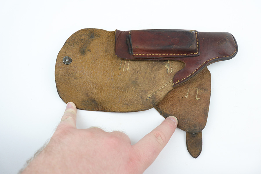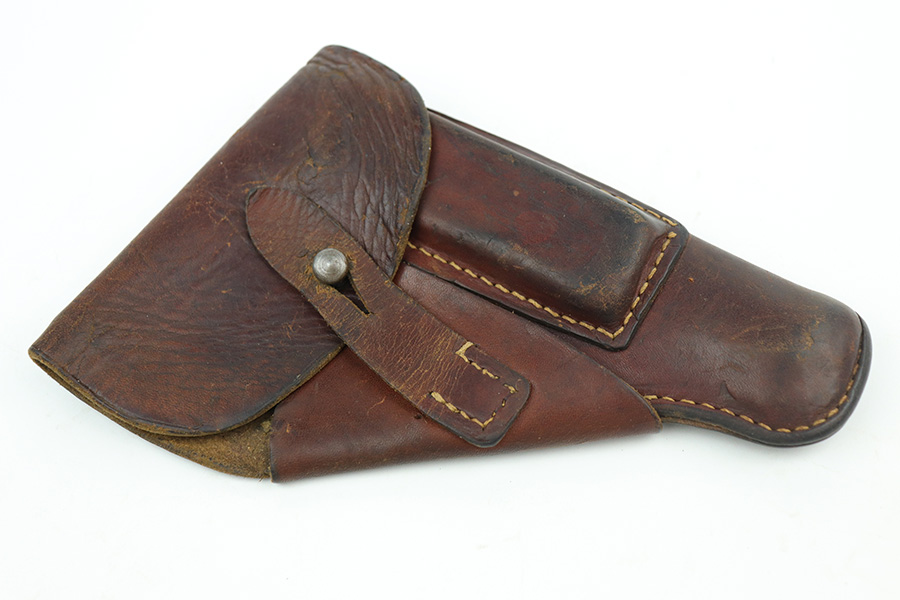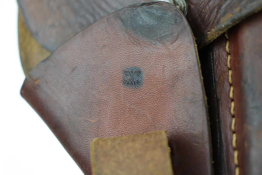 8/27/21 – This holster has a single waffen stamp under the closure strap and no other markings. The stitching and leather are both in good condition with minor wear throughout.
