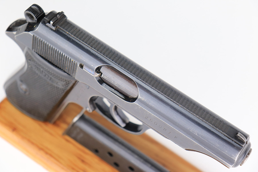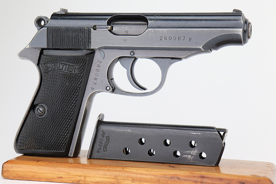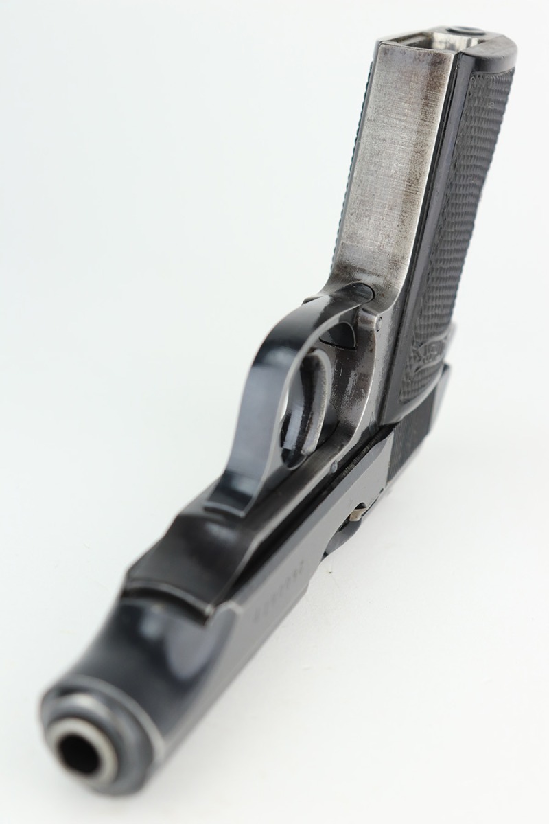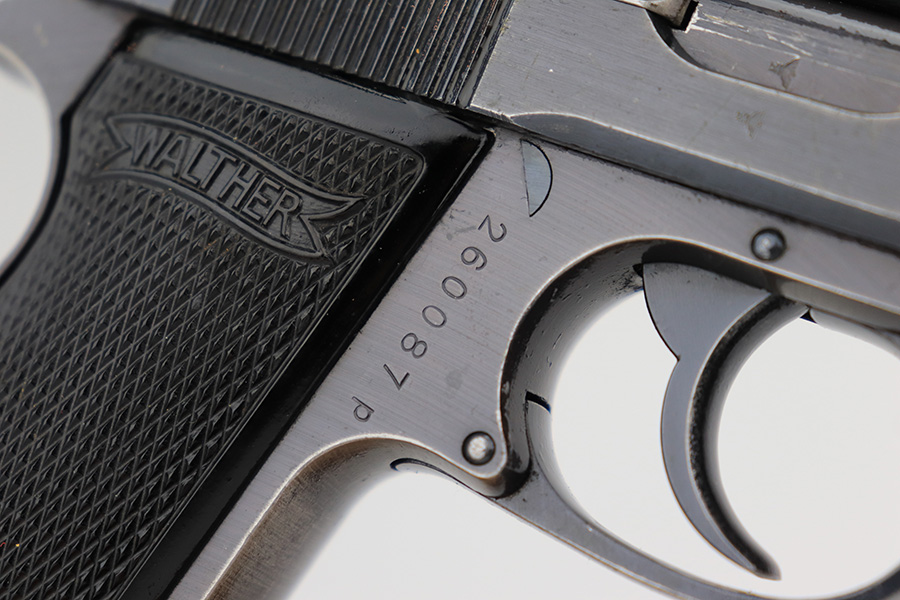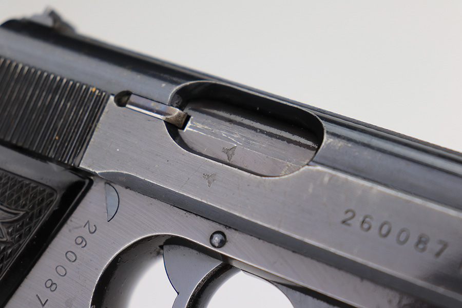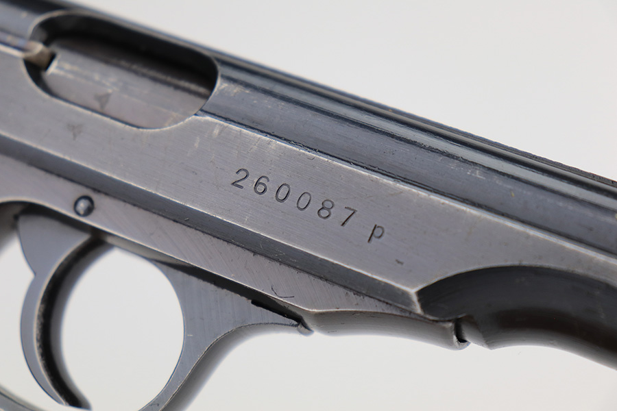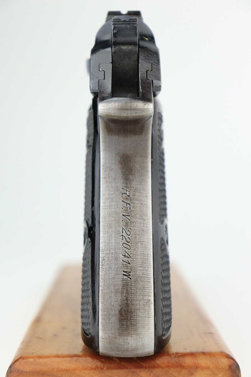 3/1/23 – This is an original Walther PP designated for the Reichs Finanz Verwaltung. It is marked “R.F.V. 22041 W” on the back strap. This Nazi department was in charge of the borders as well as government financial matters – much like our own IRS and border police. This one has retained roughly 85% of its original wartime finish. Virtually all of the finish loss is on the grip straps, but there is also some minor muzzle wear and some light scuffs along the right side of the slide. Fitted with excellent period-correct black bakelite grips. Comes with one proper wartime magazine. The bore is like-new.