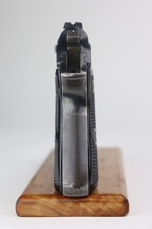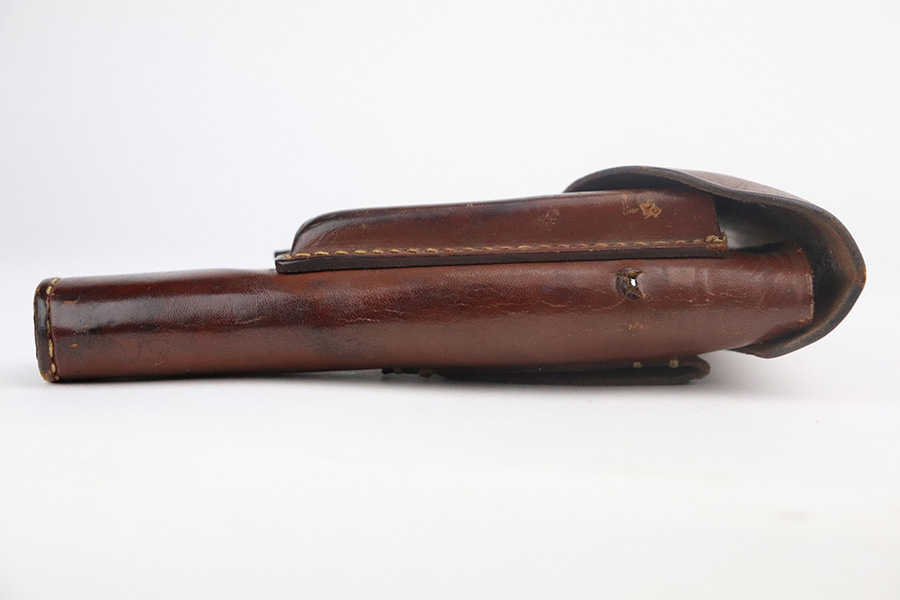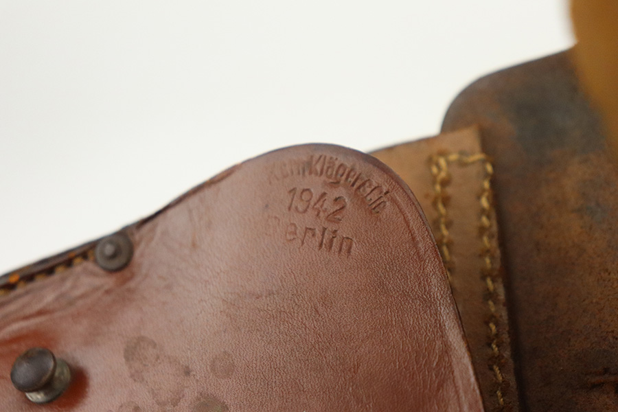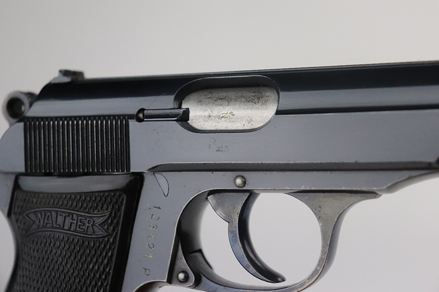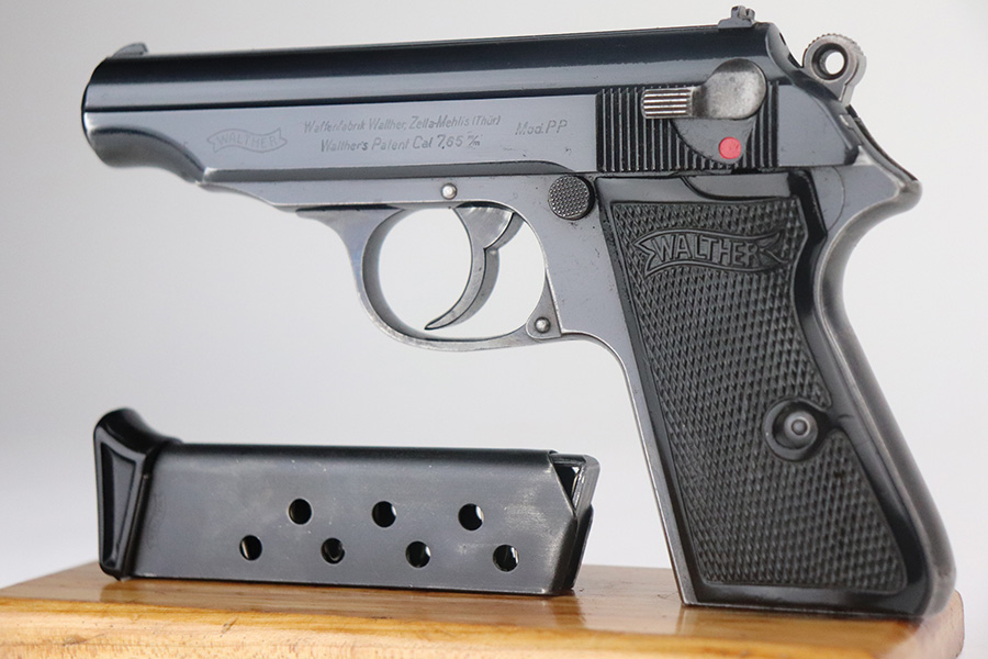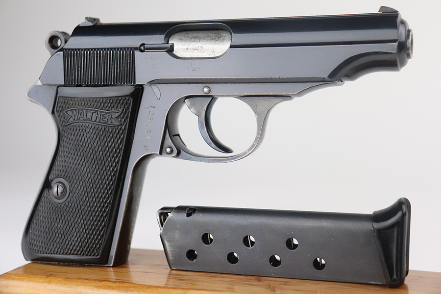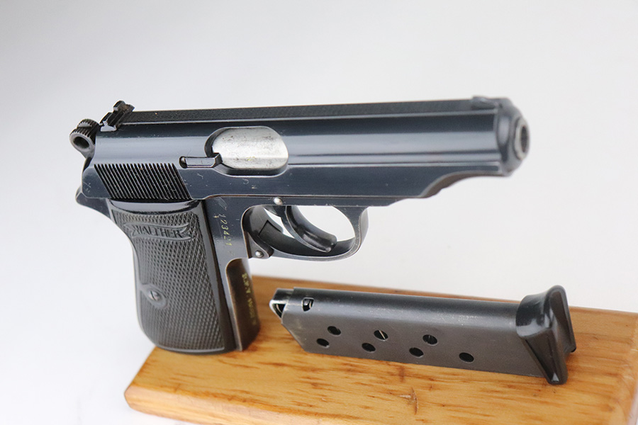 7/12/21 – This is a very nice example of a Walther PP rig manufactured in 1939. This one has an “RFV” marking on the front strap, indicating it was issued to the Finance Bureau of the Third Reich. It is all matching and has the proper “Crown N” proofs. It comes with a nice 1942-dated police-style holster, one finger extension magazine, and one flat-bottom magazine. It has retained about 93-94% of its high polish finish. There is very minor wear around the muzzle. Some minor streaky wear and pin-pricking on both straps. Comes with excellent grips. Excellent bore – shiny with strong rifling.