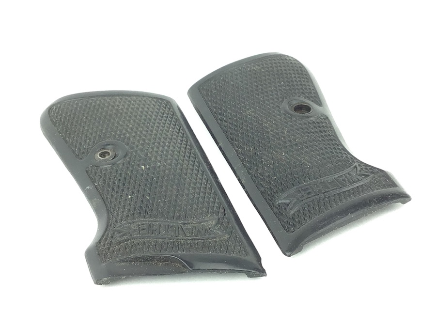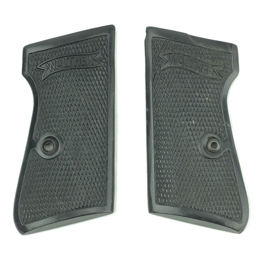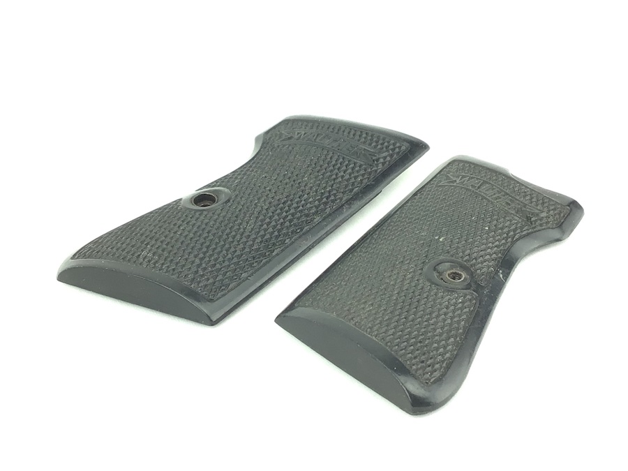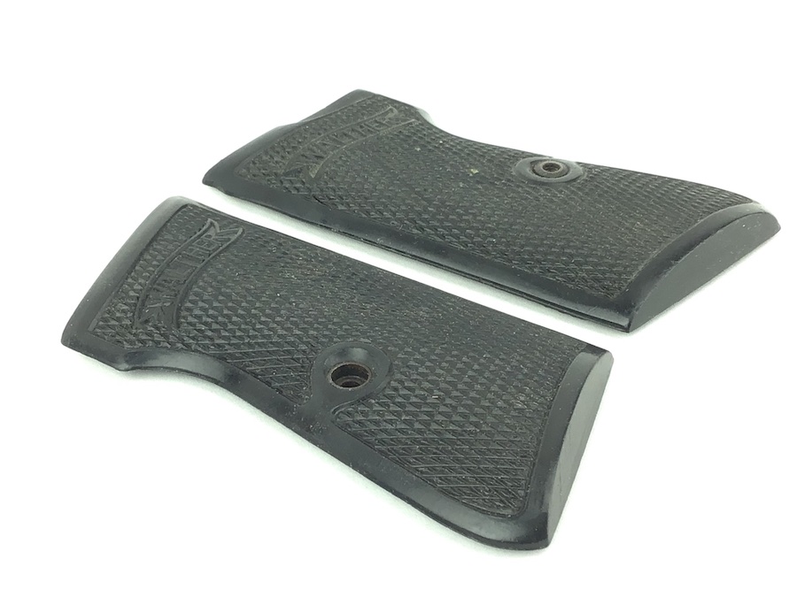 12/31/20 – This is an original pair of bakelite early WW2 Walther PP grips. The grips are early wartime variation with internal weights. Nice checkering and Walther logo. No cracks or chips. Overall in excellent condition and guaranteed original.