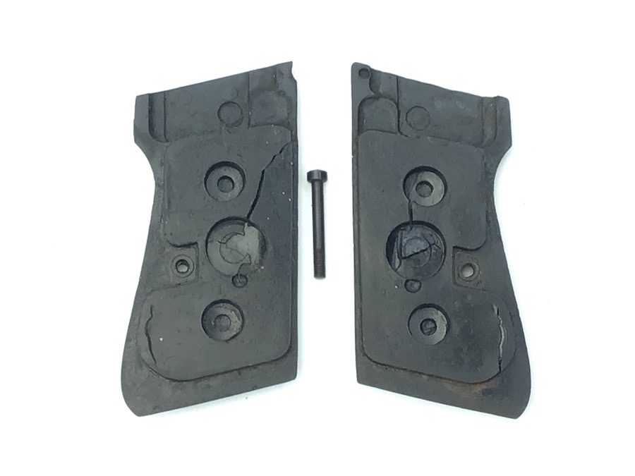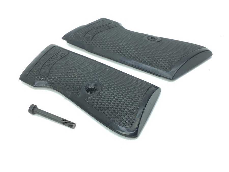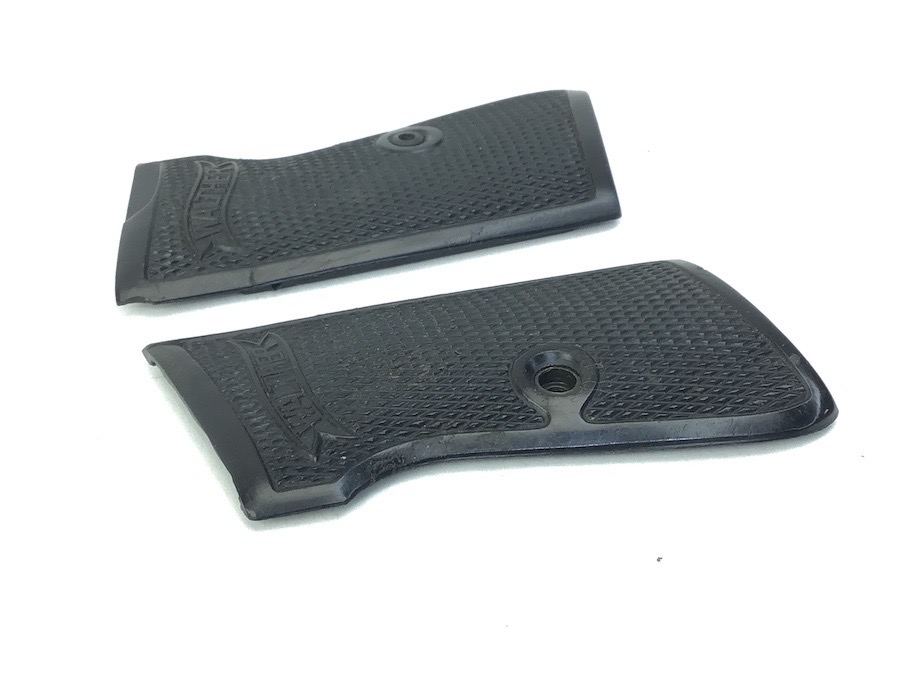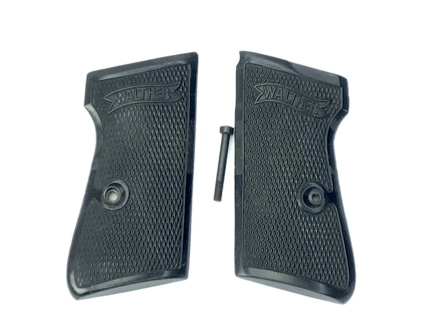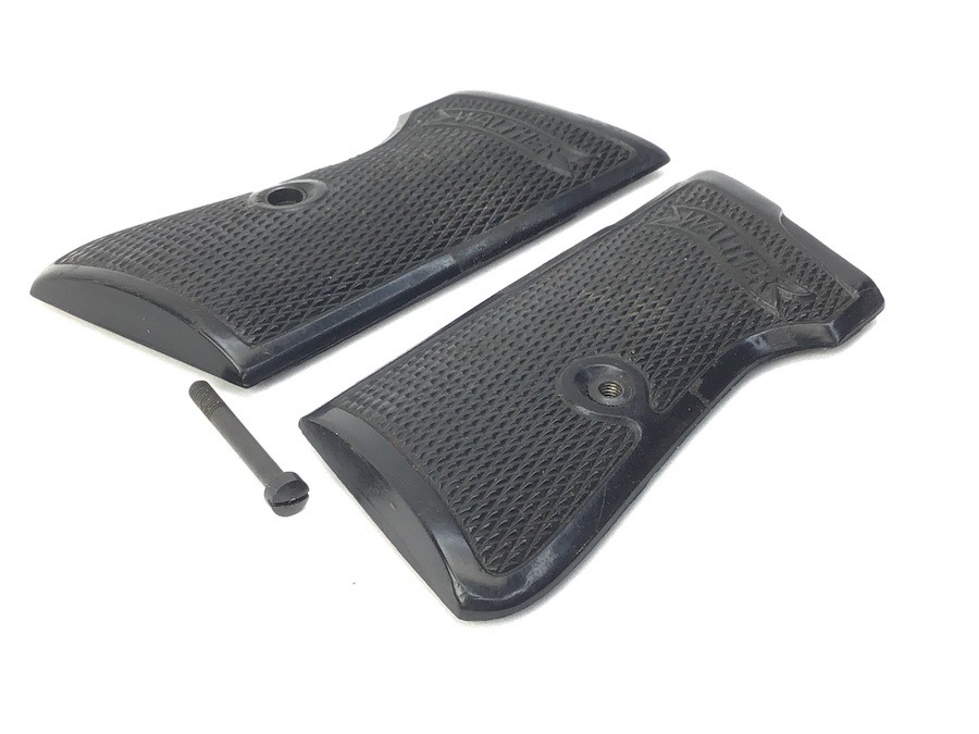 3/3/23 – Original and excellent condition. Walther PP Grips and screw. The grips are early wartime variation with internal weights. Nice checkering and Walther logo. No cracks or chips.