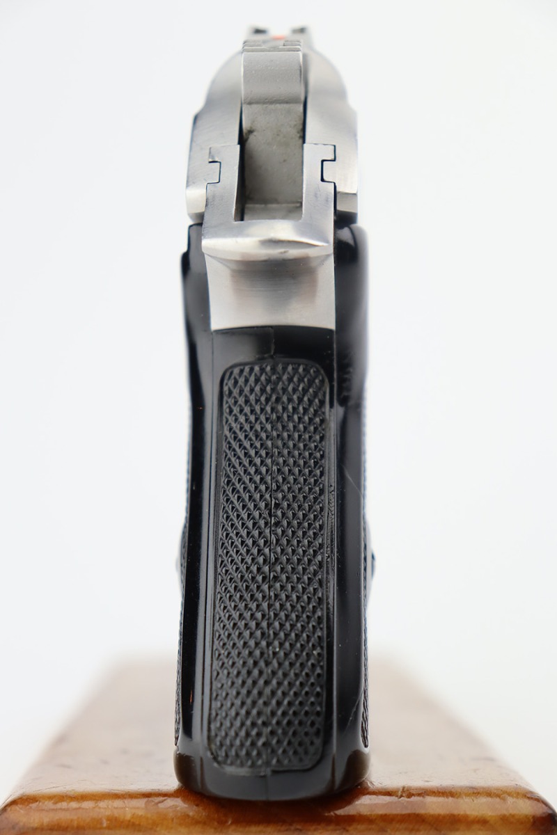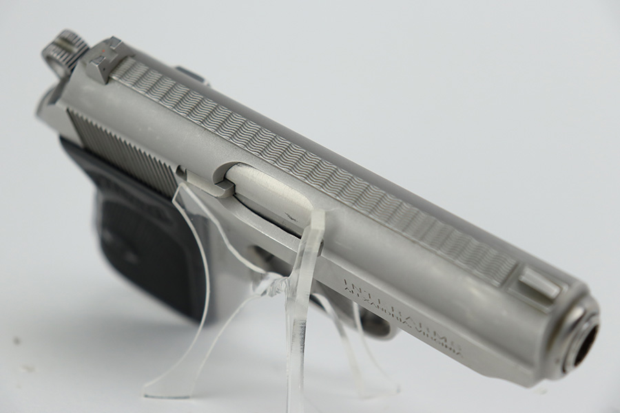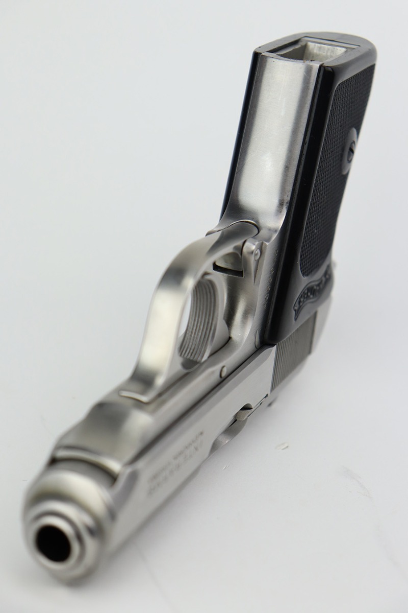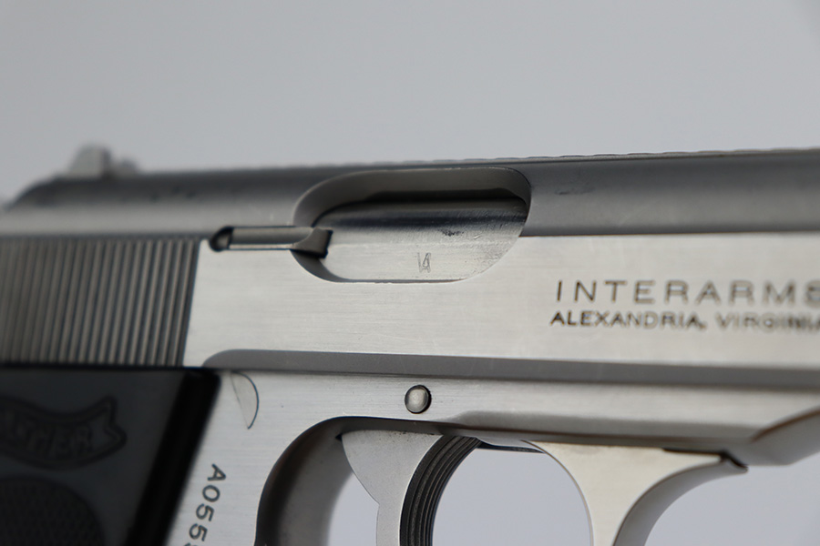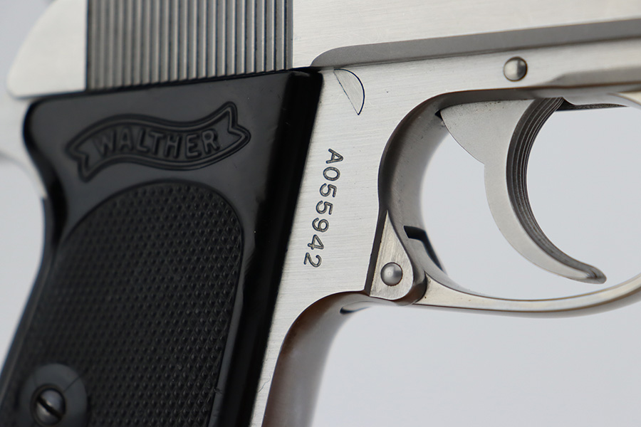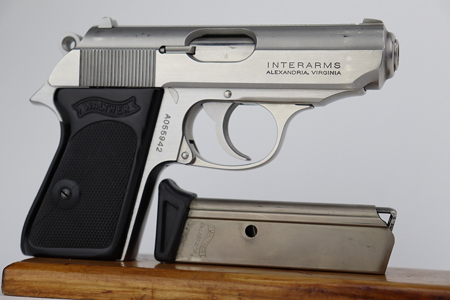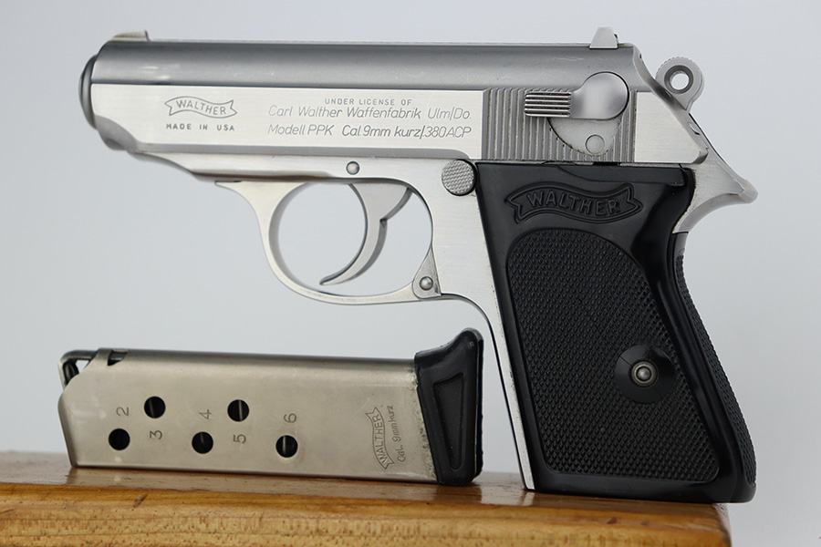 8/14/23 – This is an excellent example of a Walther PPK, chambered in .380 ACP. It has a nice stainless finish and is fitted with nice black plastic grips. Comes with one proper finger extension magazine. Overall, the gun is in excellent condition, but there are tiny scratches and scuffs here and there. Mint bore.
