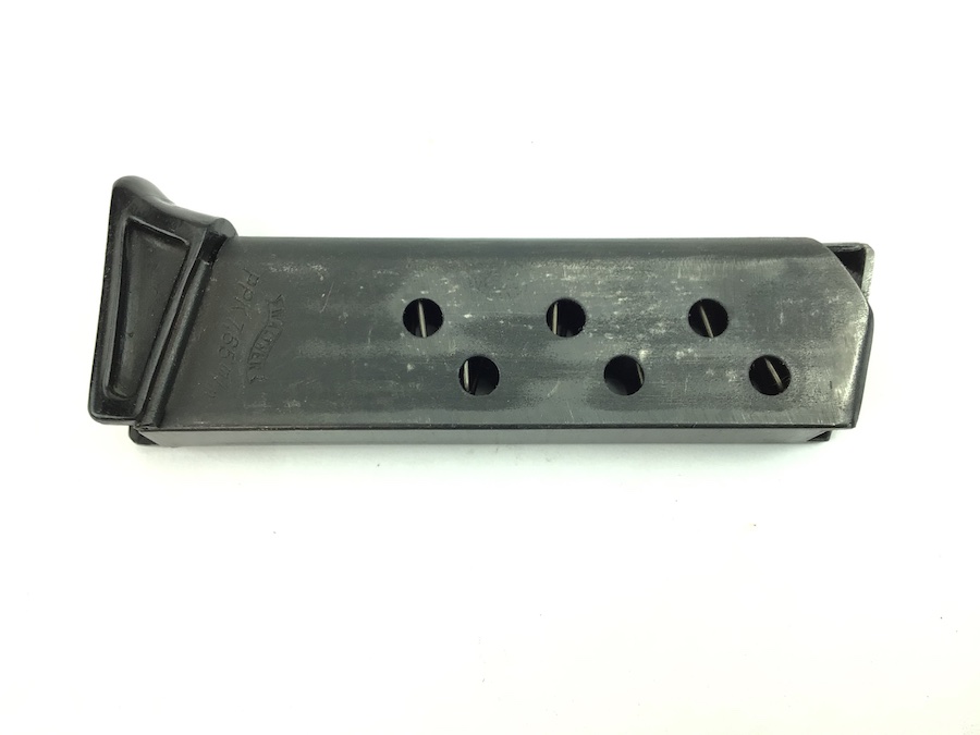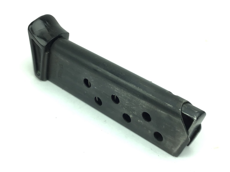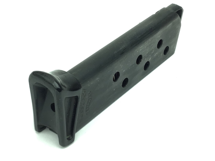 10/18/21 – Original and excellent condition. Walther PPK, black finger extension magazine. Wartime variation with stamped 7.65mm inscription on the left side along with the Walther banner. Minor bluing wear, but no rust, dents or cracks. Original finger extension base in very good condition. Strong, smooth spring.