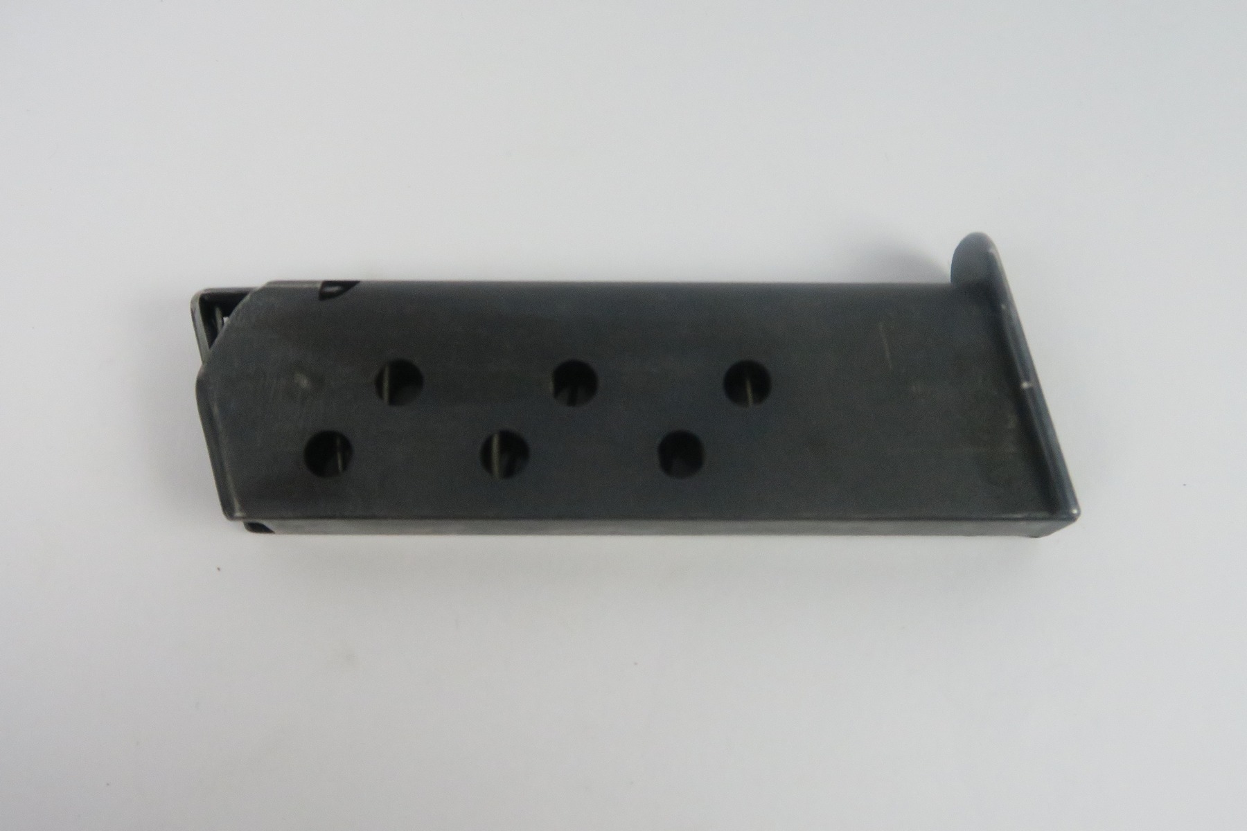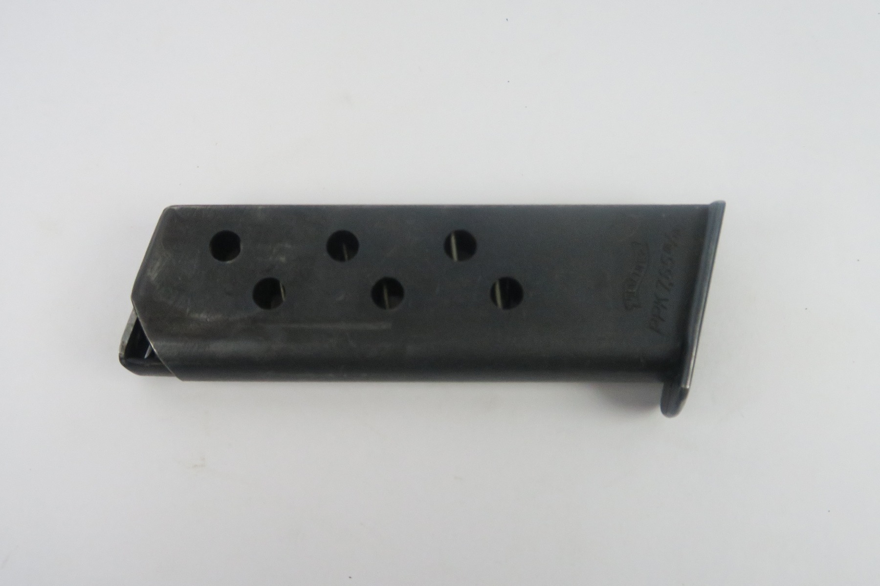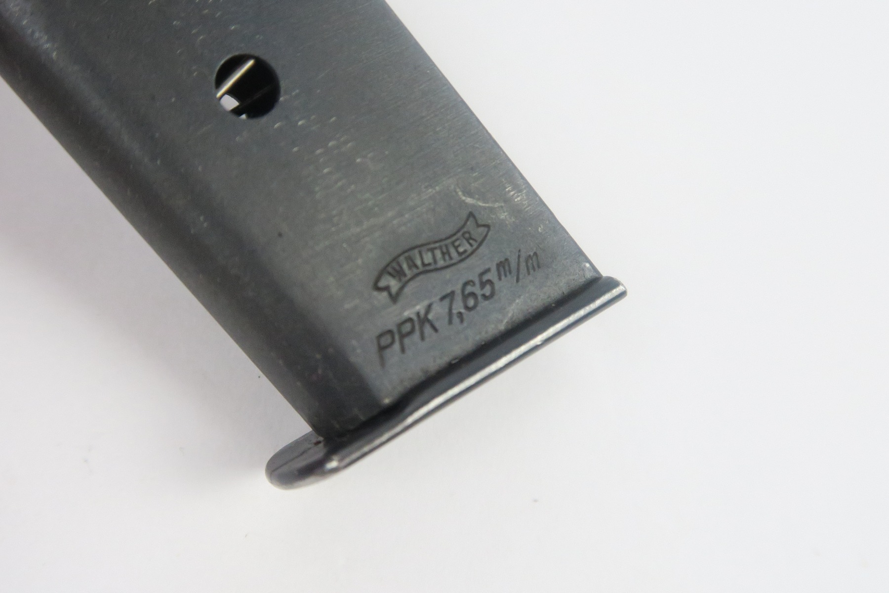 1/24/18 – This is an original Walther PPK magazine from World War 2. The magazine is wartime production with “PPK 7,65m/m” under the Walther banner stamped on the frame. The spring is strong and fully functional. No rust or pitting and guaranteed original.