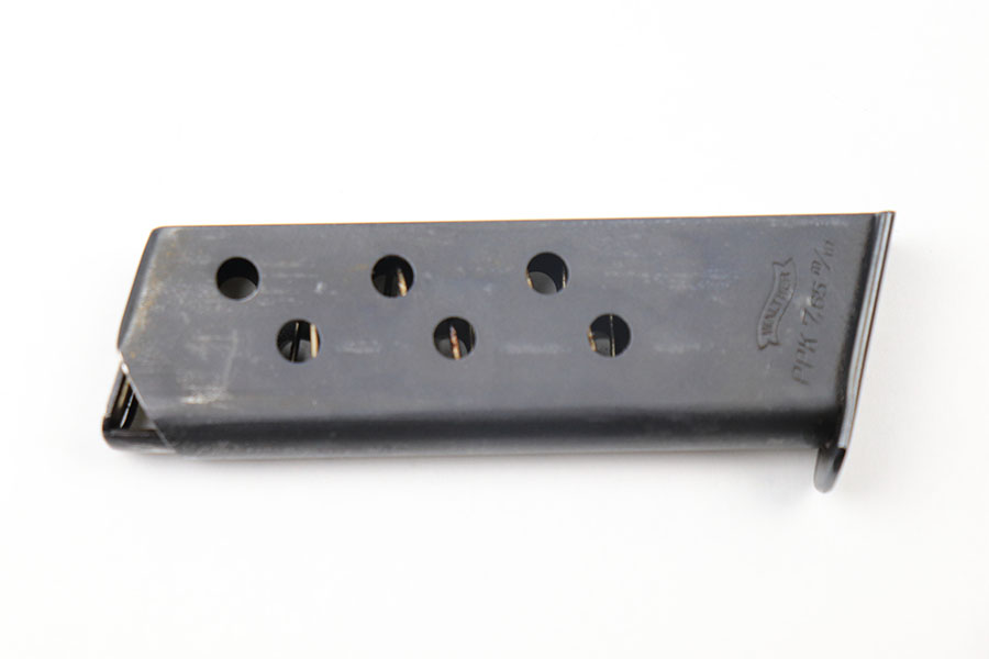 10/29/21 – This is an excellent WW2 production Walther PPK magazine. Beautiful blued finish throughout the tube, with a higher polish blued finish on the base. Strong, fully functional spring.