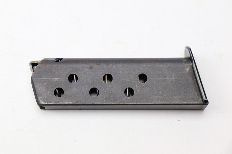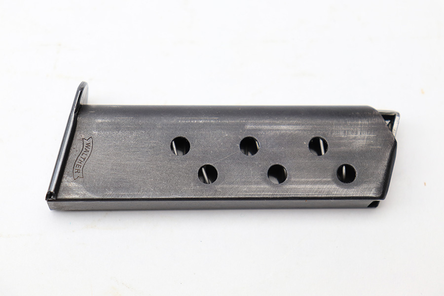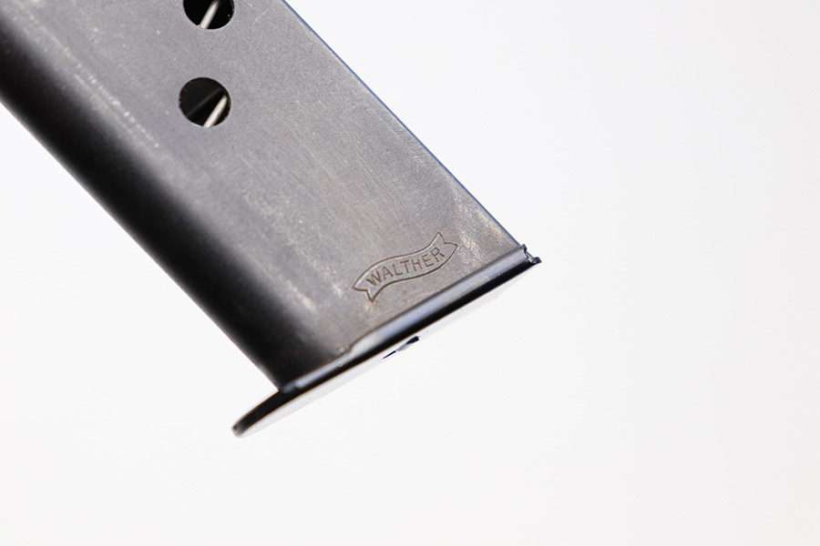 4/14/22 – This is an original Walther PPK magazine from WW2. The magazine has a dull blued finish on the tube and a Walther banner stamped on one side. Excellent condition and fully functional.
