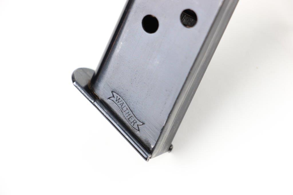 4/1/24 – This is an original, early WW2 production Walther PPK magazine. The magazine has some light finish loss and surface patina throughout, but most of the wear is on the spine and is light finish loss. Great overall condition and all original with a strong, functional spring.