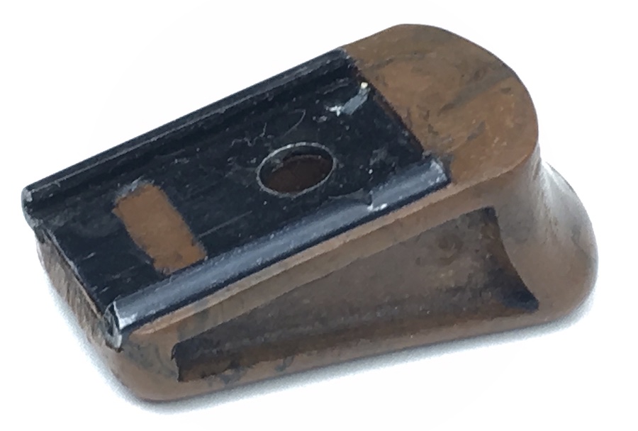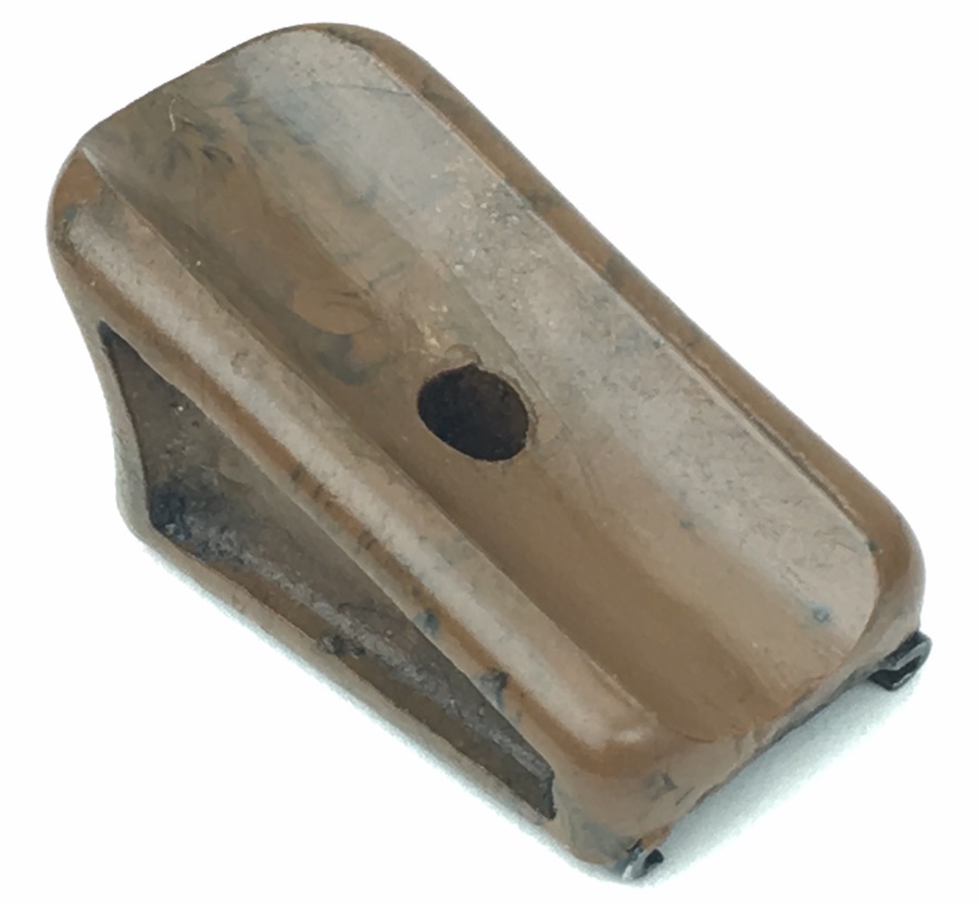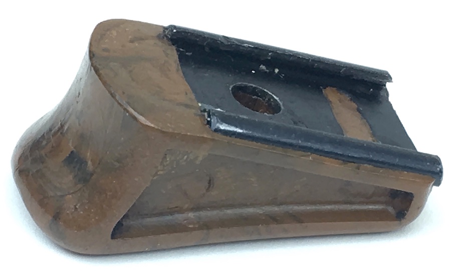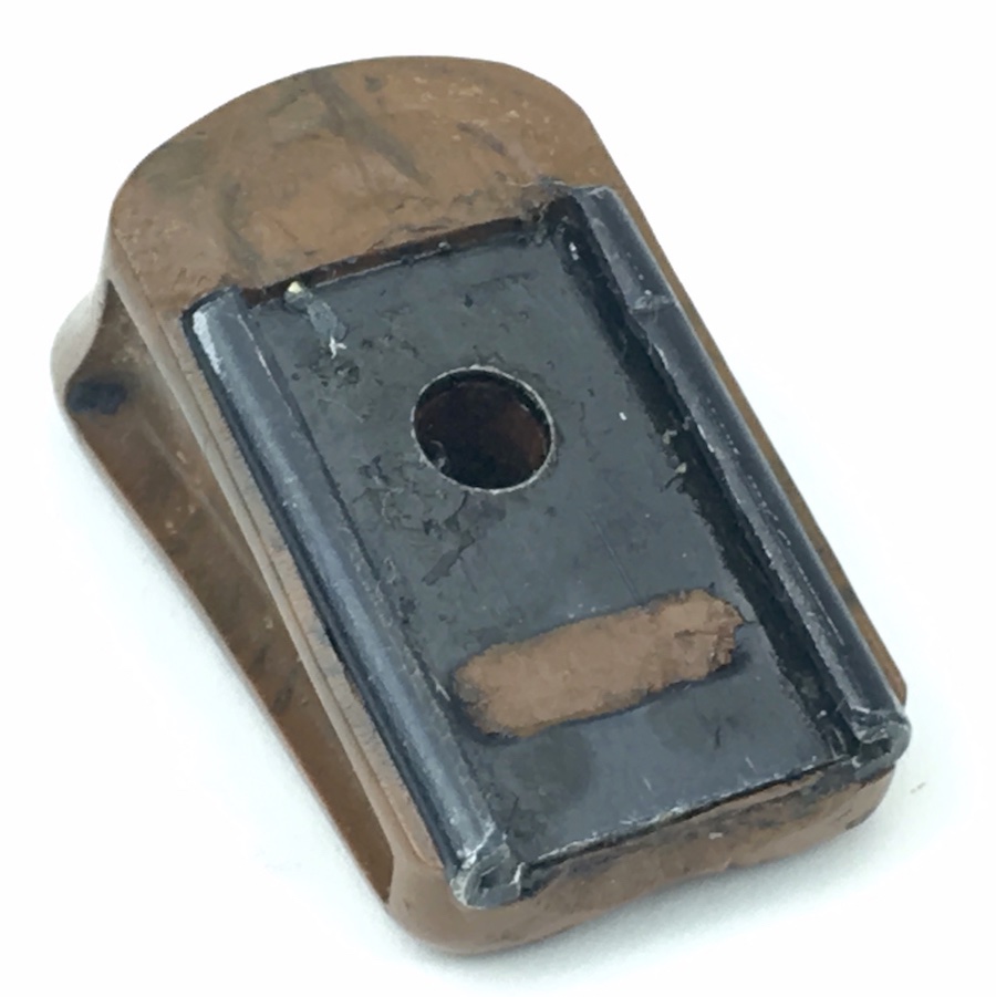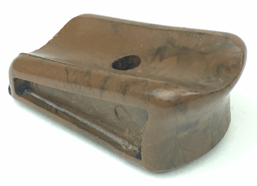 10/2/19 – Walther PPK, Pre-War Magazine finger extension. Manufactured from Bakelite, this FE is in absolutely excellent condition ready to install on any early / pre-war PPK magazine. Beautiful mottled brown color with no chips or cracks. Metal base is completely secure and straight.