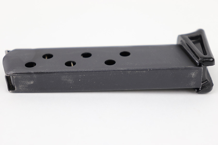 4/26/23 – This is an original WW2 production Walther PPK magazine with a postwar black finger extension. The magazine tube is in excellent, near mint condition. The finger extension is excellent as well with no cracks or chips. Strong, fully functional spring.