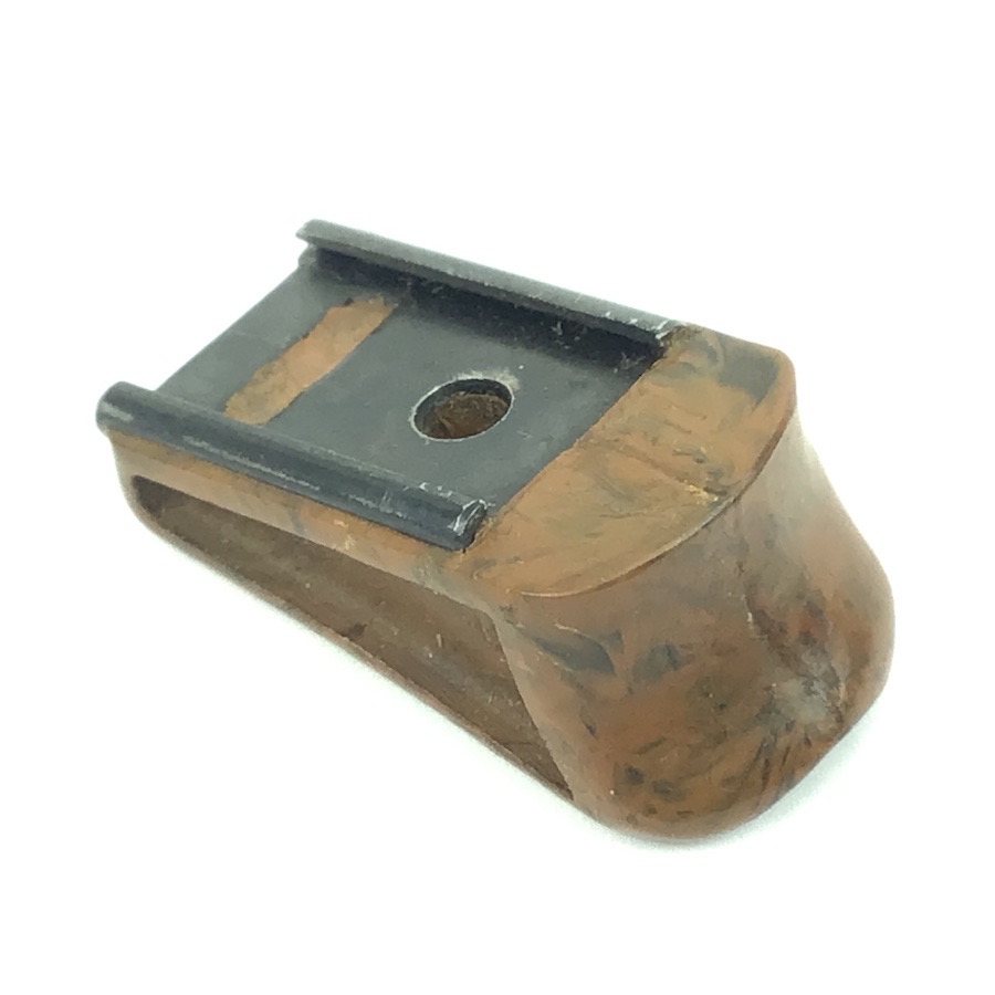 4/4/22 – Walther PPK, Pre-War Magazine finger extension. Manufactured from bakelite, this finger extension is in excellent condition ready to install on any early / pre-war PPK magazine. Beautiful mottled brown color with no chips or cracks. Metal base is completely secure and straight.