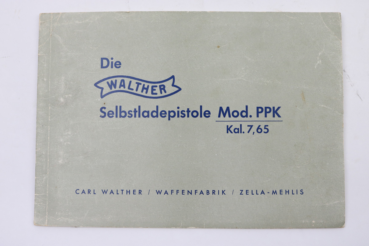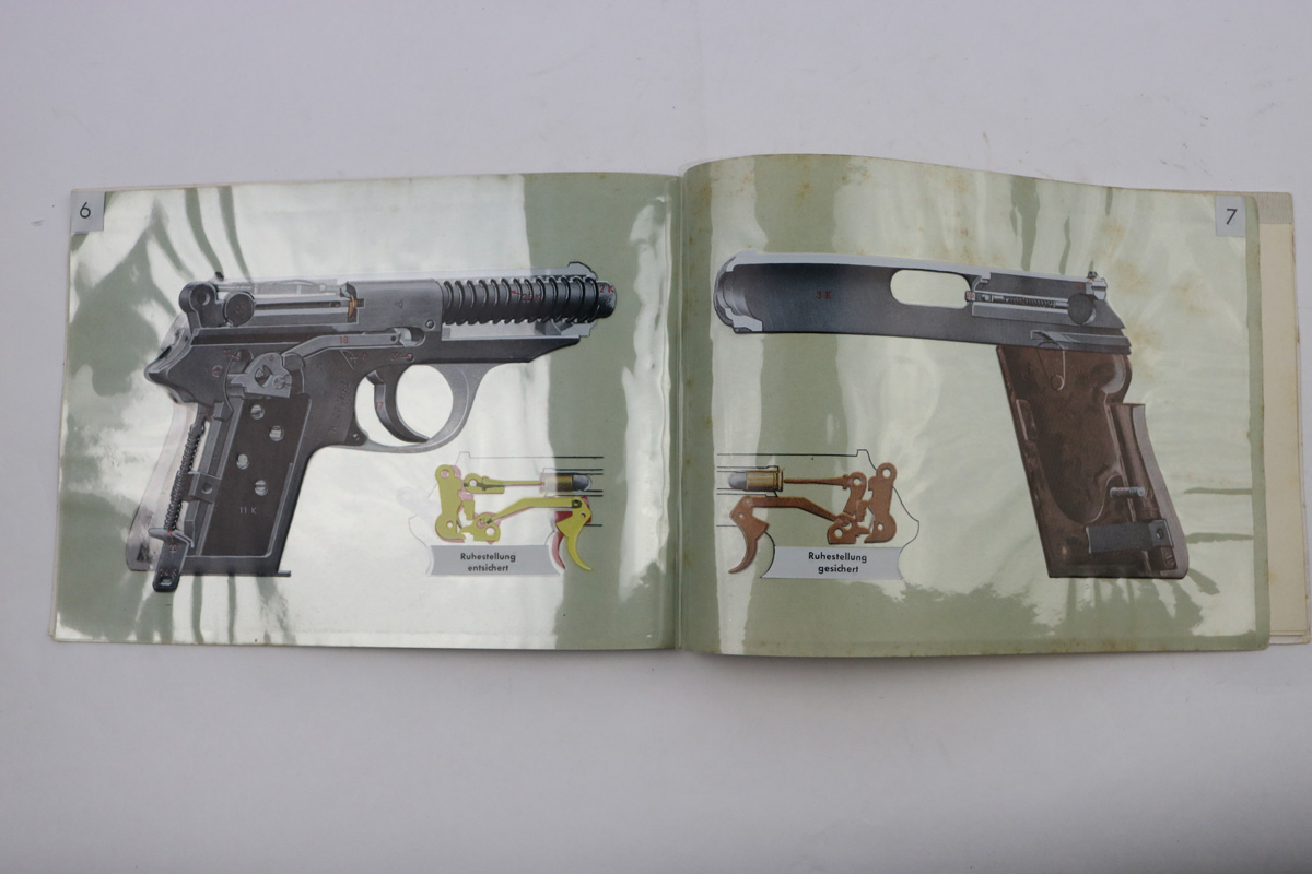 6/21/18 – This is an excellent, all original and in tact Walther PPK “Trans-Art” manual. The manual features color images of a Walther PPK with transparent pages where you can strip the pistol down layer by layer as you flip the pages. All pages are in tact and the back cover is dated may of 1942. Guaranteed original and authentic.