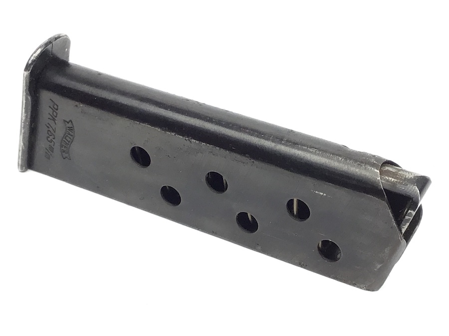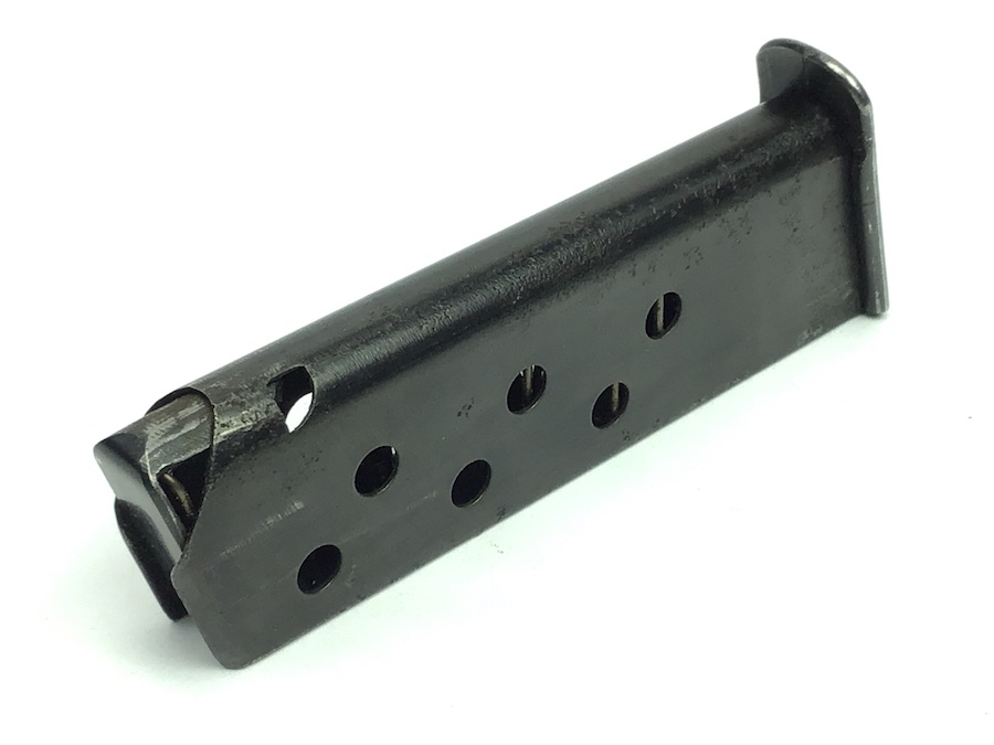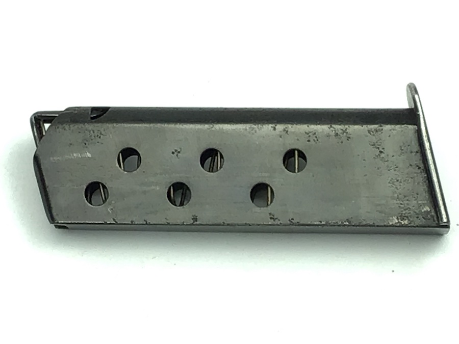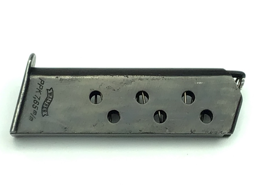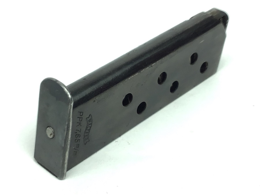 10/8/20 – This is an original WW2 era wartime PPK magazine with dull bluing finish. Very good condition and fully functional. Some minor pitting on the body.