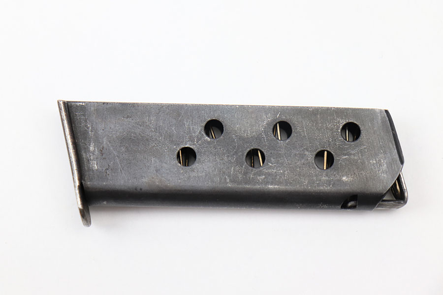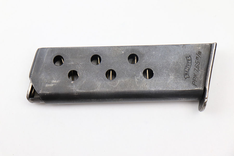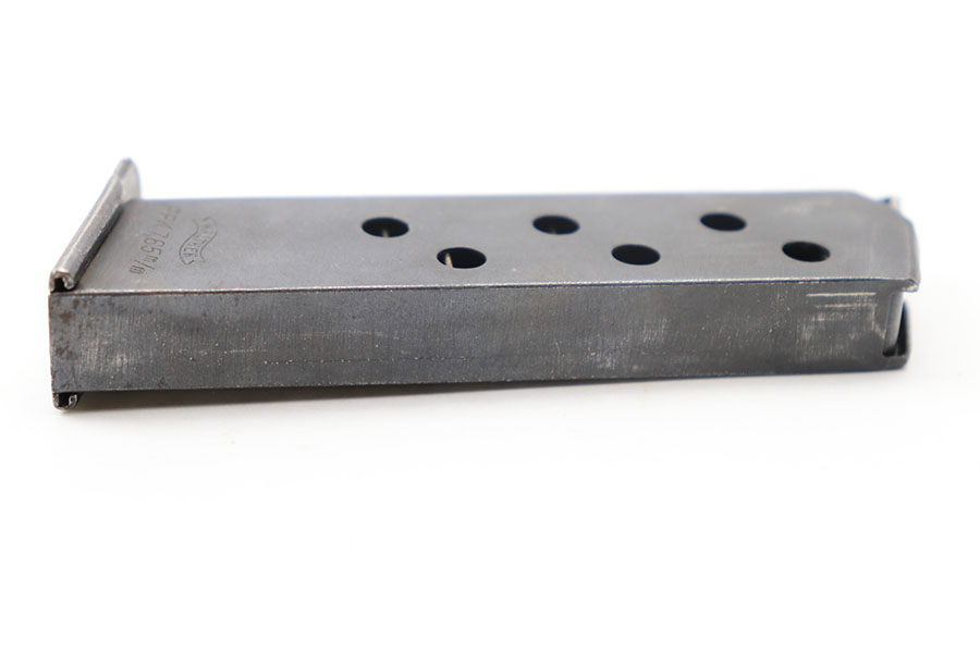 5/10/21 – This is an original wartime production Walther PPK magazine. Excellent condition with a dull finish and properly stamped on the tube. Some mild surface wear on the base. Strong, fully functional spring.