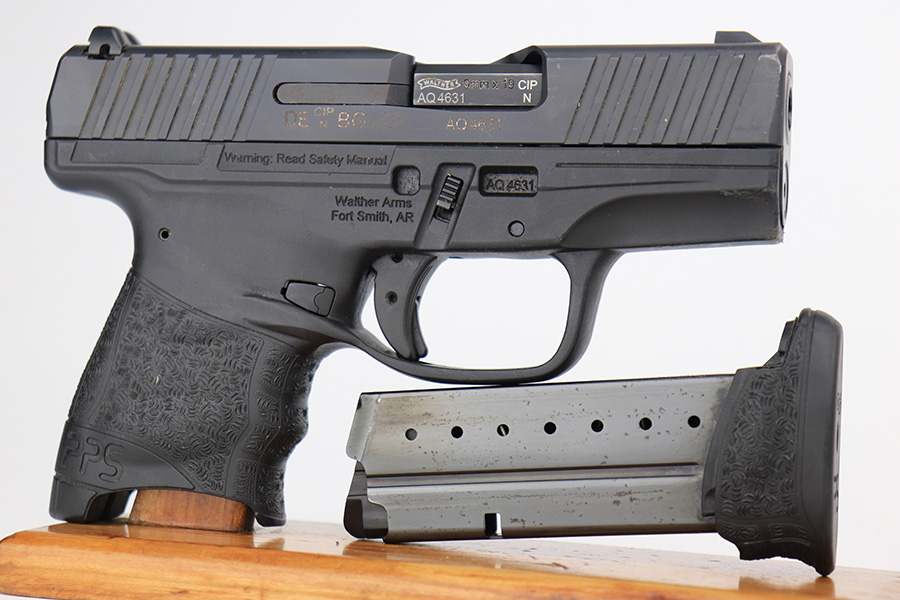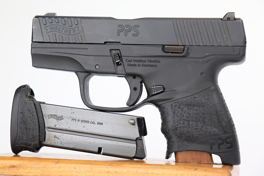 4/3/23 – This is an excellent example of a Walther PPS manufactured in 2016 and chambered in 9mm Luger. All matching with the proper proofs. It has retained nearly all of its finish with just hints of wear on some of the high edges and some light scuffs and handling marks here and there, most noticeable along the top of the slide. Some light oxidation in and around the markings on the right side of the slide. Comes with one finger extension magazine and a spare flat-bottom magazine. Mint bore.