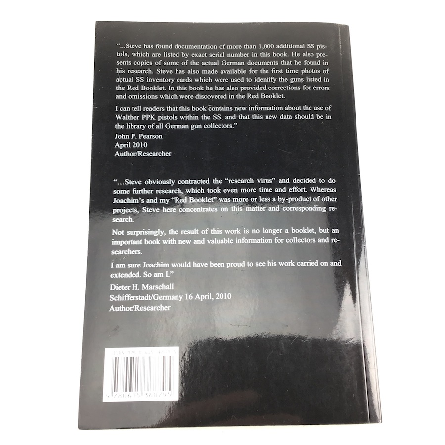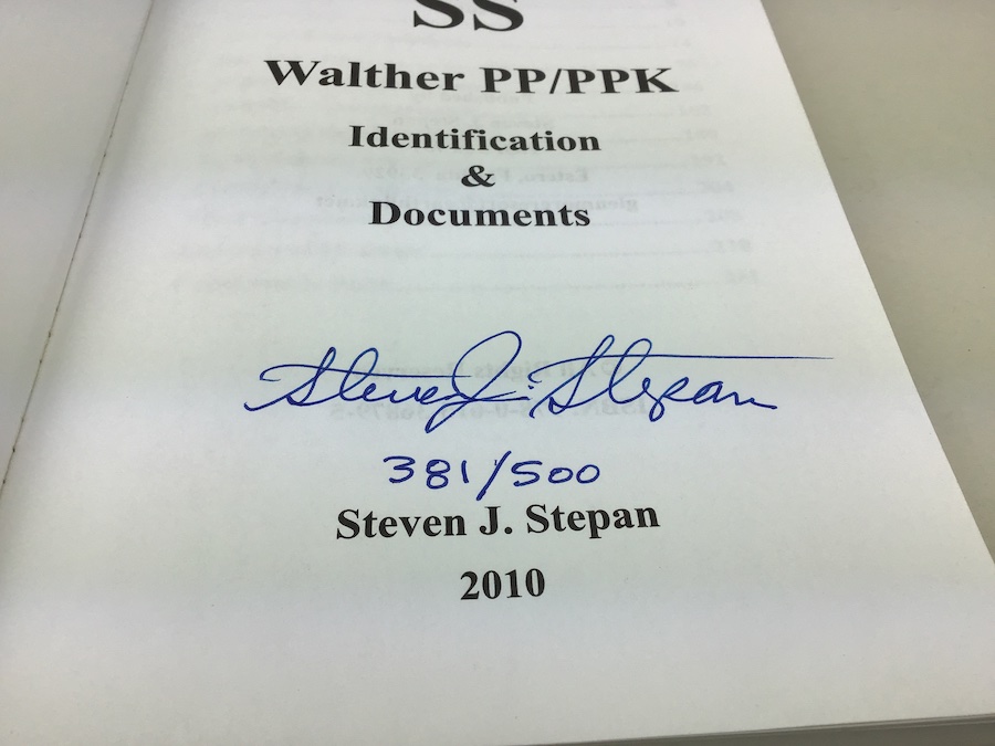 2/26/20 – This is a copy of Stepan’s book on SS Walther PP/PPK pistols: Identification & Documents. The book is signed by the author on the interior page. 211 pages total – paperback copy has minimal damage to the outer cover, but all interior pages are excellent.