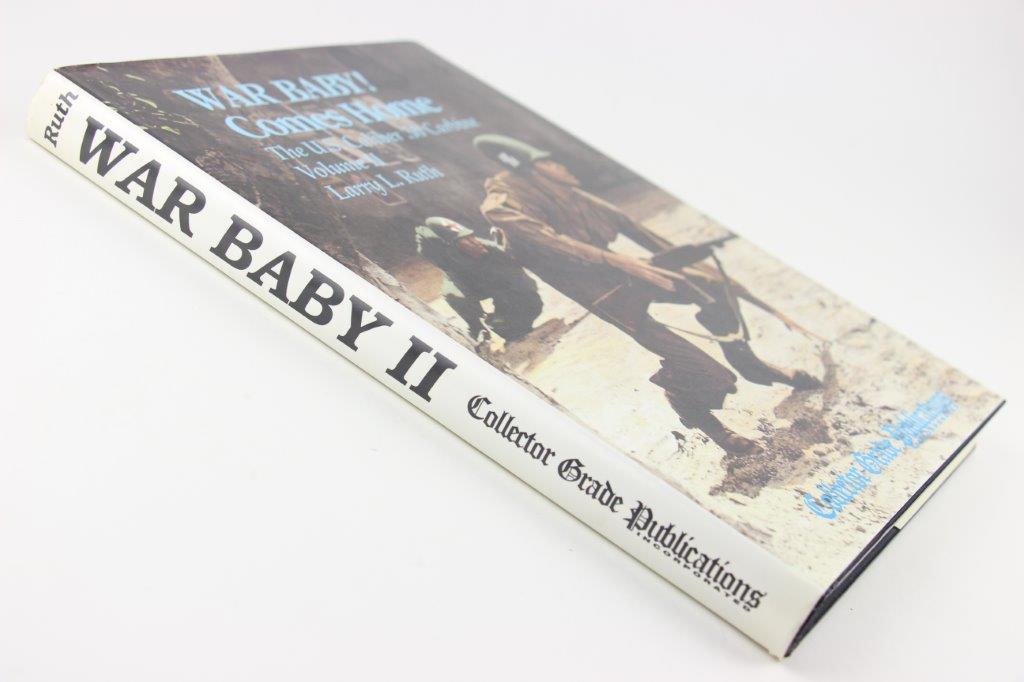 6/10/24 – This is an original first edition copy of Larry L. Ruth’s resource book, “War Baby! Comes Home: The U.S. Caliber .30 Carbine Volume II”. The hardcover book comes with the original cover sleeve. The sleeve has light surface wear and minimal damage. All pages are excellent and clean. This is an essential collector resource book with manufacturing and historical data, photographs, and charts. 846 total pages.