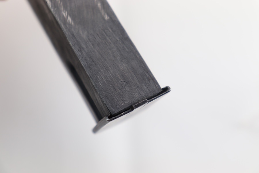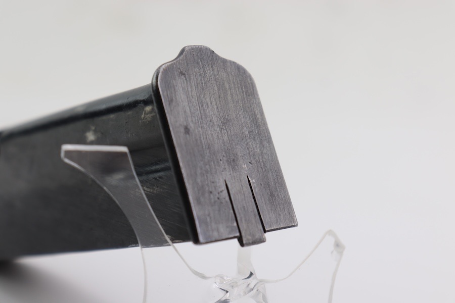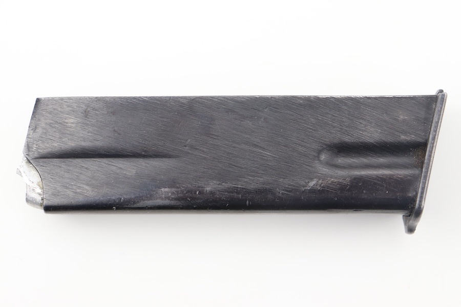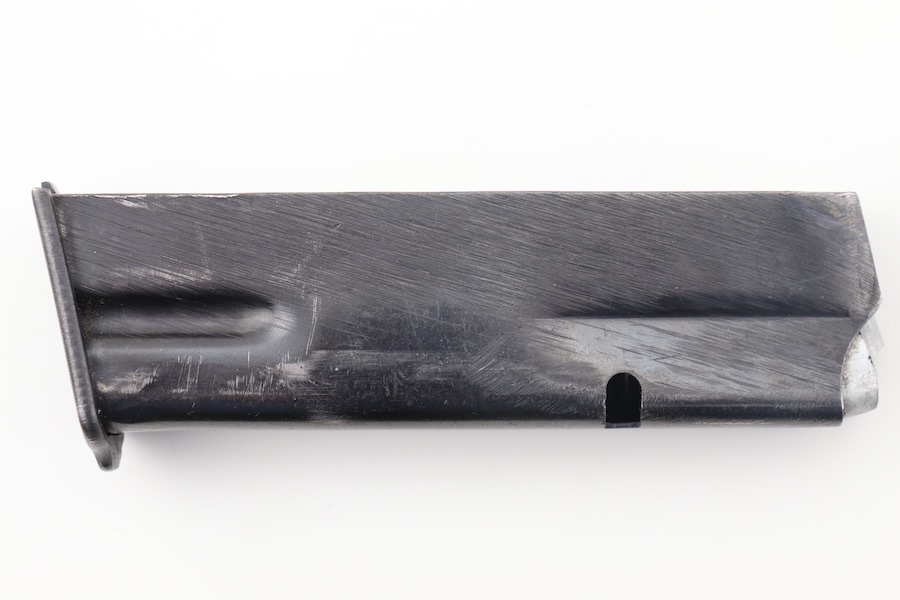 4/11/24 – This is a great, original-condition wartime FN Hi Power magazine. It retains most of its original blued finish, with light wear on the spine and belly. The spring has excellent retention and smooth operation. A circle “C” stamp is on the bottom of the spine.