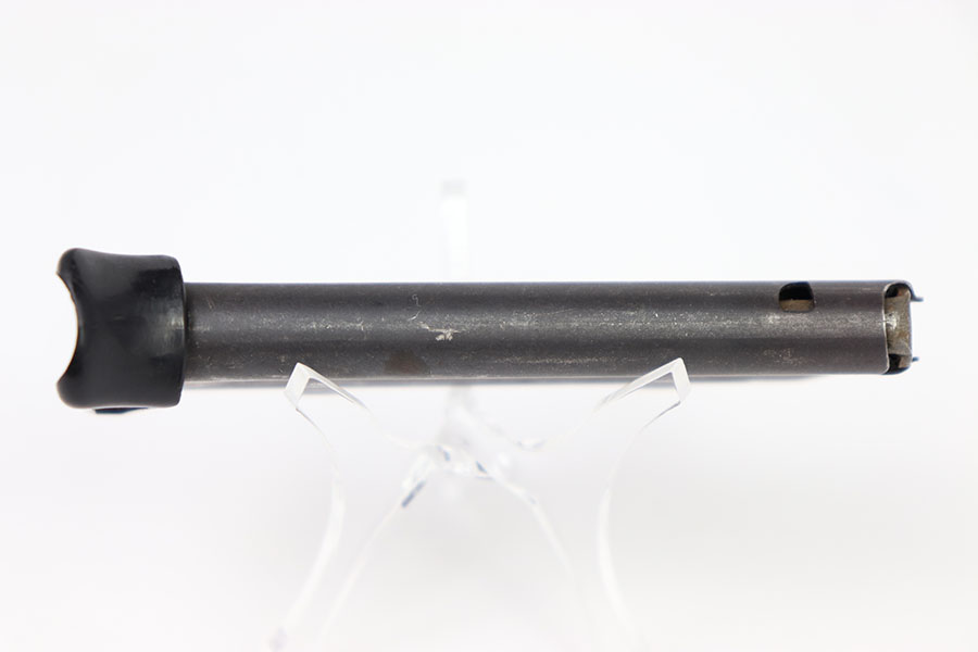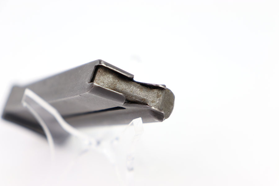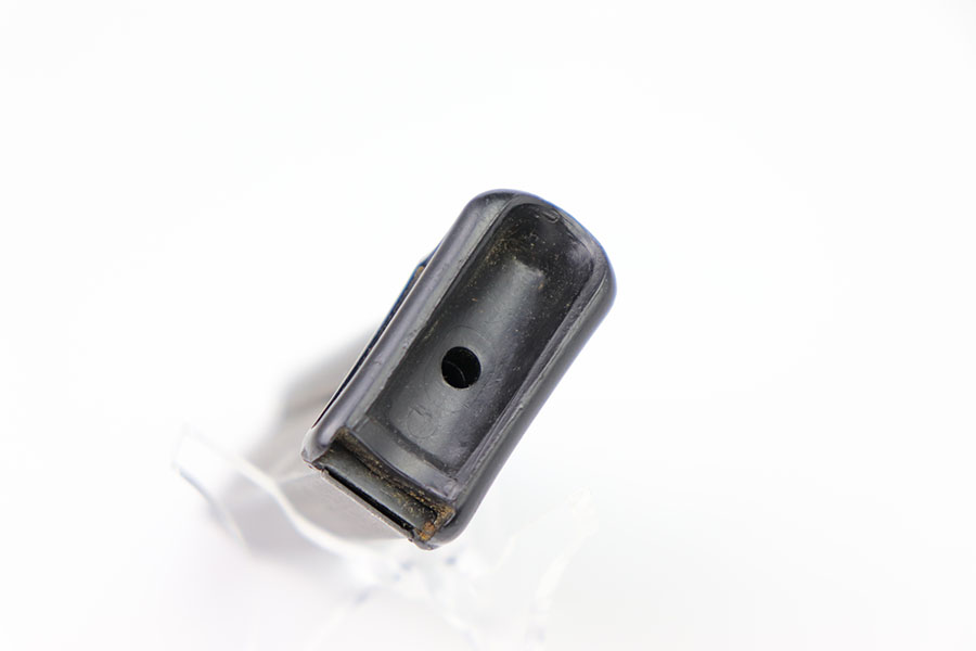 2/19/24 – This is an excellent example of a Wartime .22 Caliber Walther PPK Magazine with a finger extension. This magazine has a blued finish, slotted, full spring, and the thin lip finger extension. The original bluing on this magazine is in excellent condition other than some light edge wear, as seen in the photos. The black bakelite base is in excellent condition. Spring is smooth and fully functional