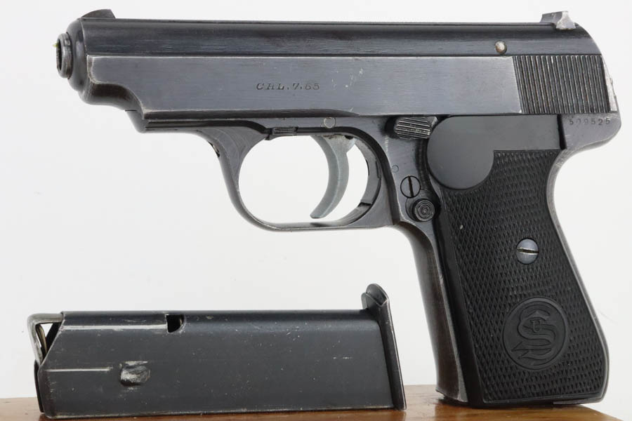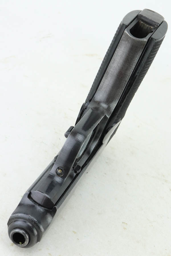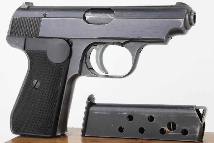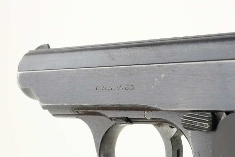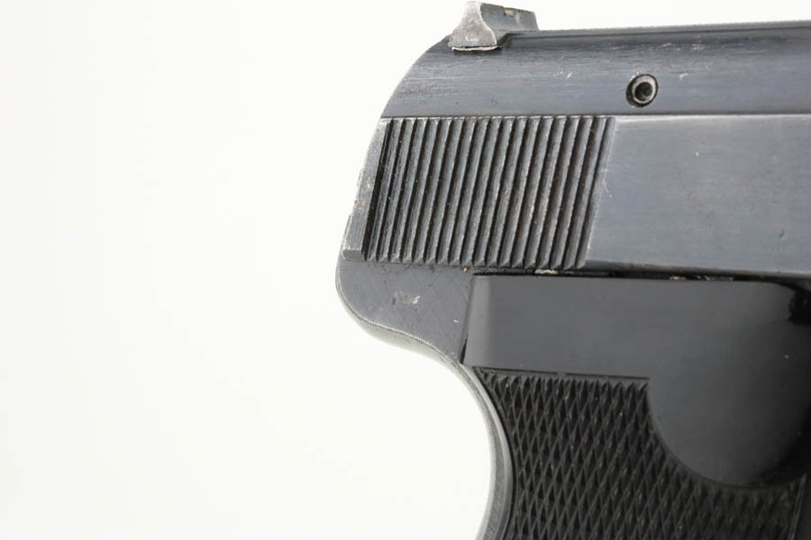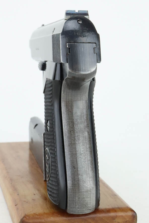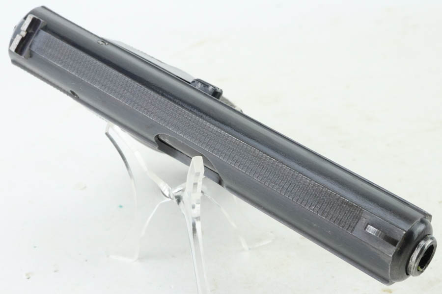 7/1/24 – This is a very nice example of a wartime commercial Sauer 38h. Has the proper “Eagle N” proofs. Slide is mismatched to frame, though finish matches perfectly. Its original wartime finish rates about 90% with thinning on the grip straps and very minor muzzle wear. Fitted with black bakelite grips and comes with one proper magazine. Mint bore.