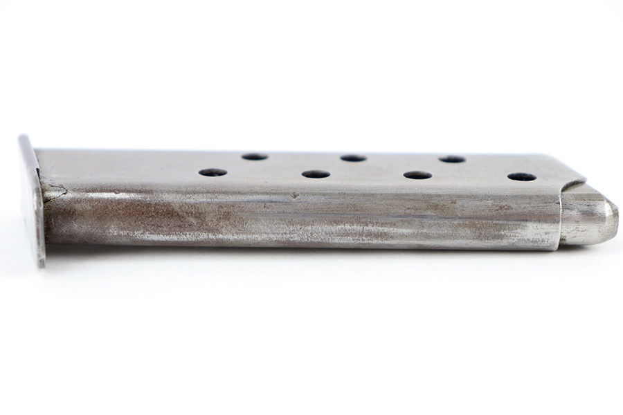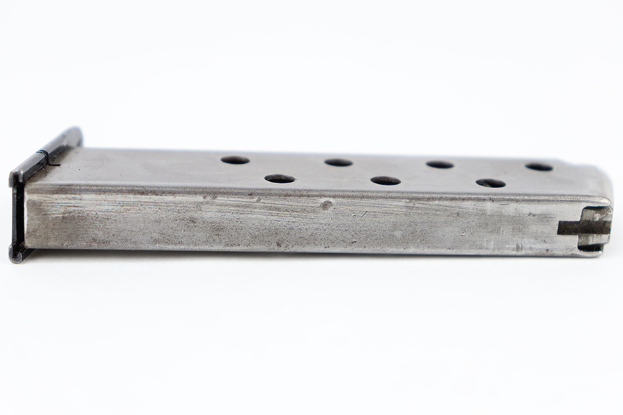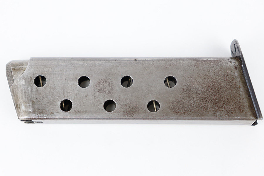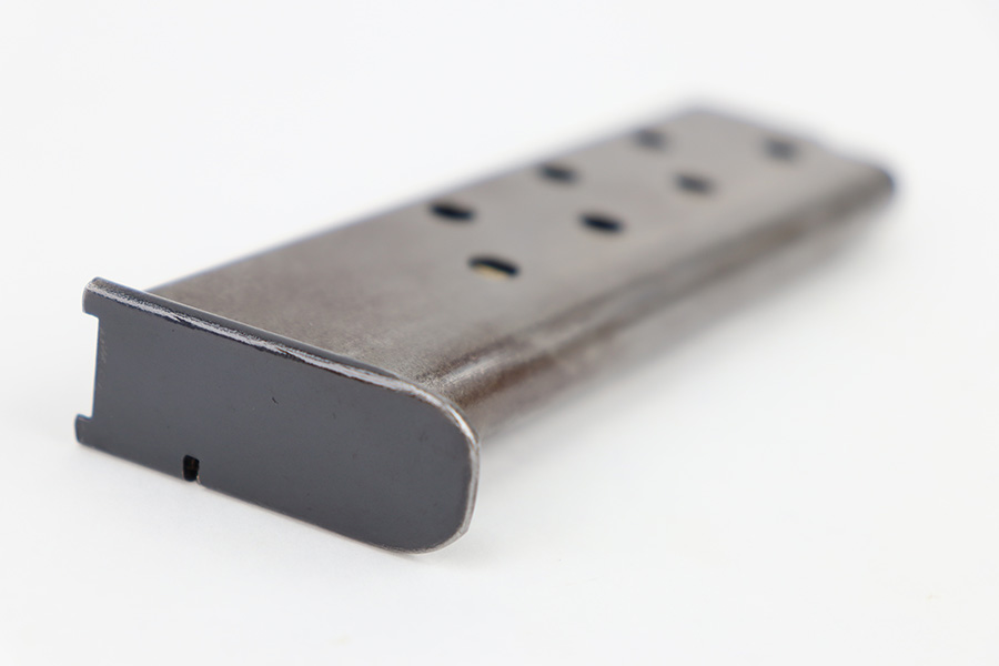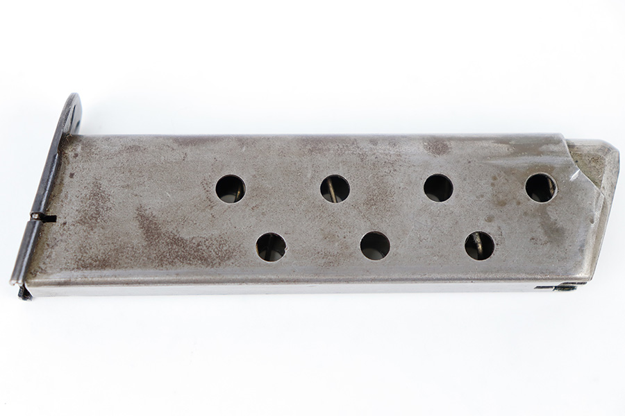 9/6/23 – This is a WW2 wartime production Mauser HSc magazine. The magazine is in great condition with some honest wear on the surface of the tube. This is browning patina but no rust or pitting. The blued base is blank and excellent. Strong, functional spring.