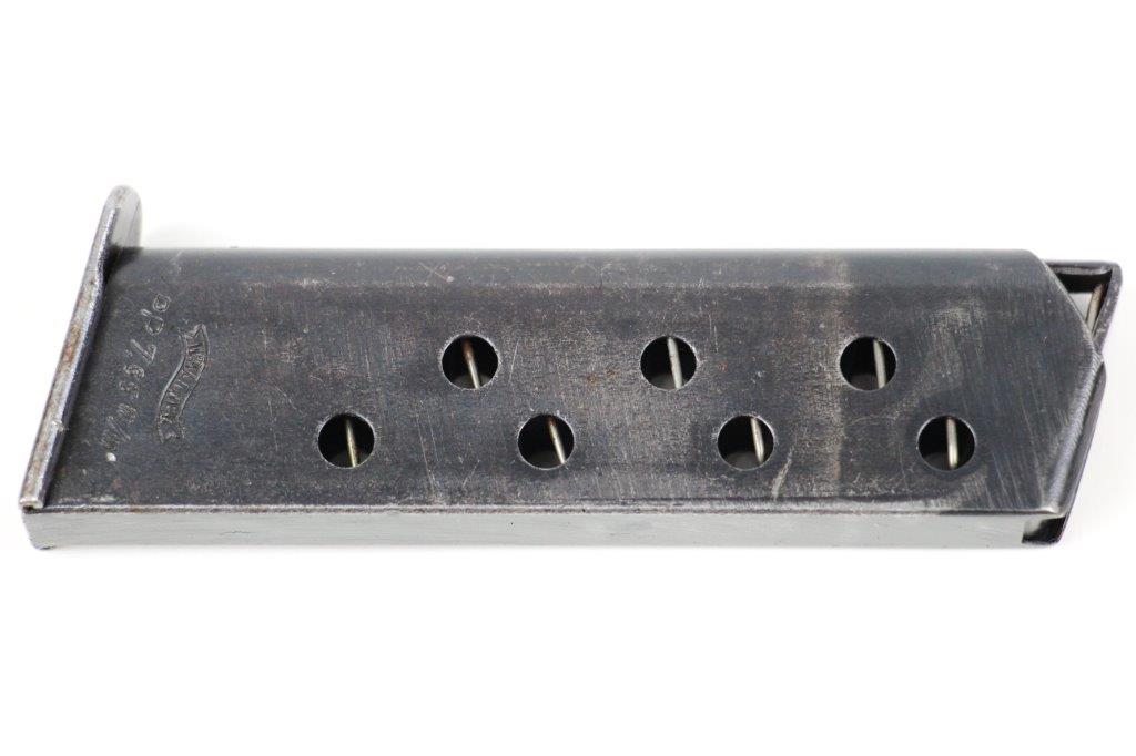 4/1/24 – This is an original, wartime production WW2 Walther PP magazine. The magazine has minimal surface wear and mild patina, but is in near-excellent overall condition. Strong, functional spring. No rust or pitting.