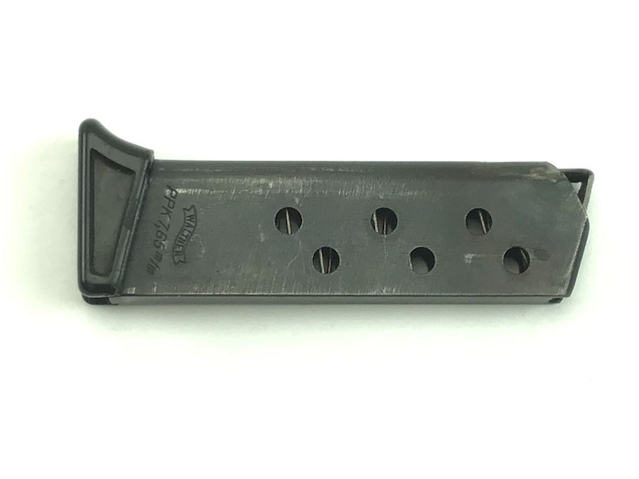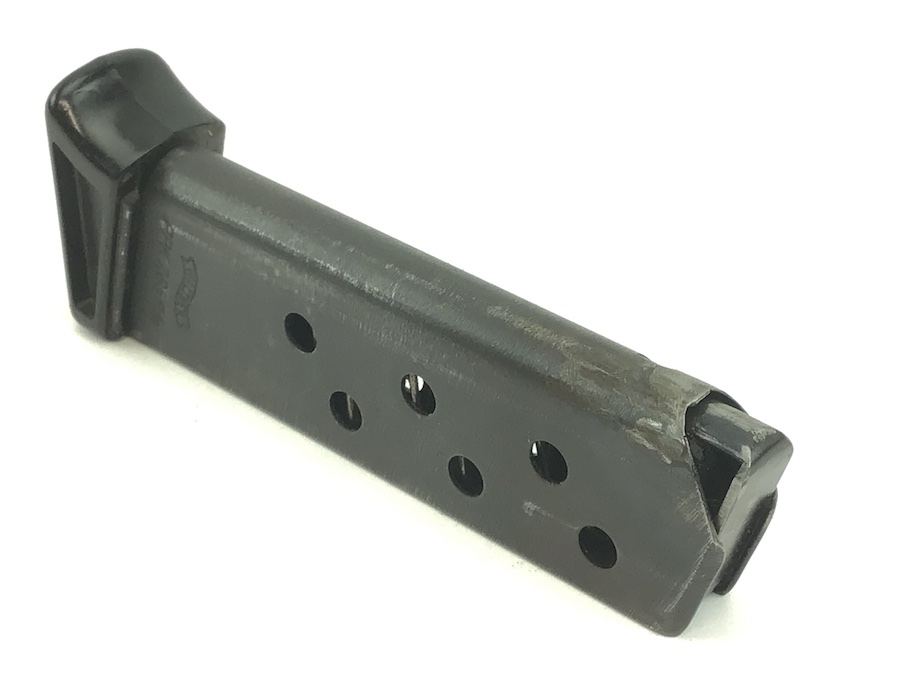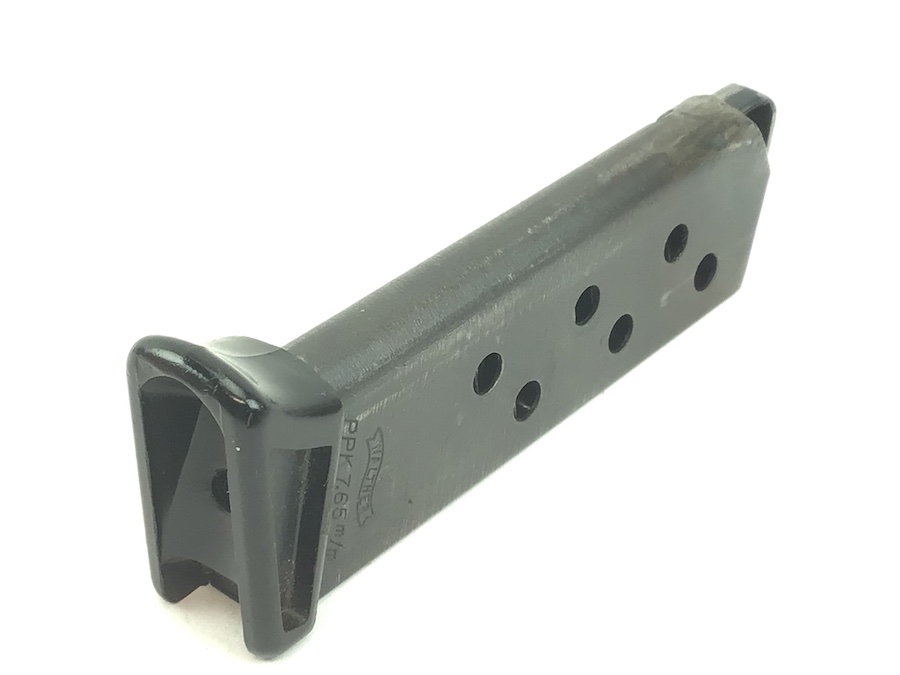 12/17/21 – Great condition Walther PPK, black, finger extension magazine. Wartime variation with stamped 7.65mm inscription on the left side along with the Walther banner. Some bluing wear, but no rust, dents or cracks. Original finger extension base in very good condition. Strong, smooth spring.