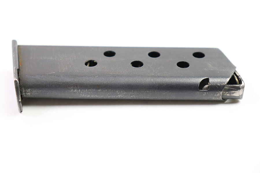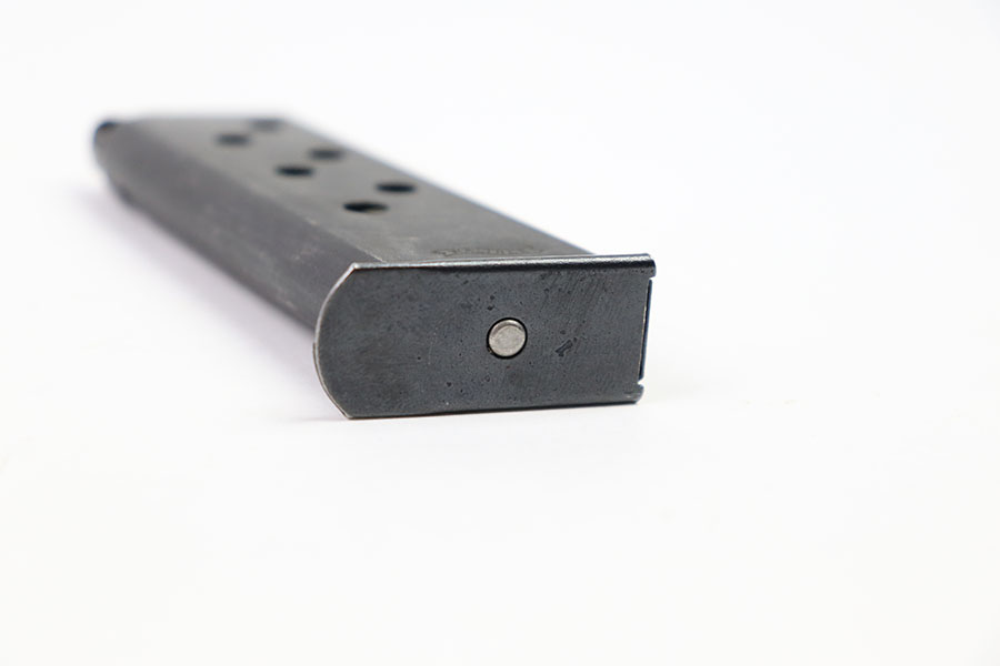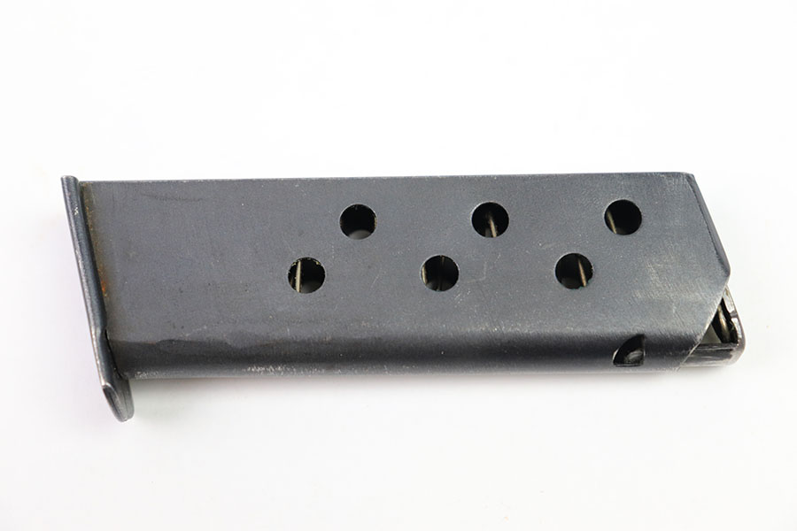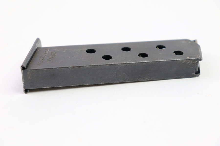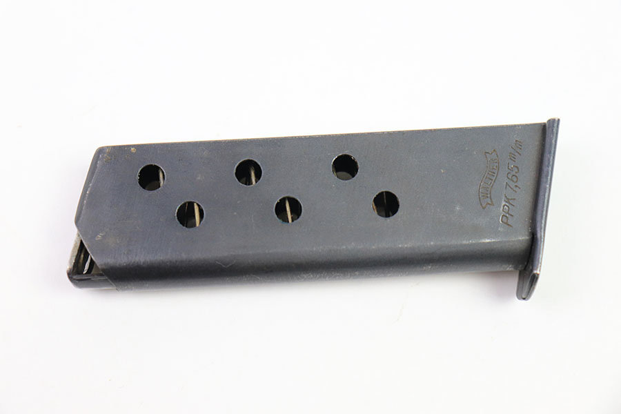 7/19/21 – This is a minty condition Walther PPK magazine. The magazine is wartime with a dull blued finish and caliber information under the Walther banner. Strong, fully functional spring.